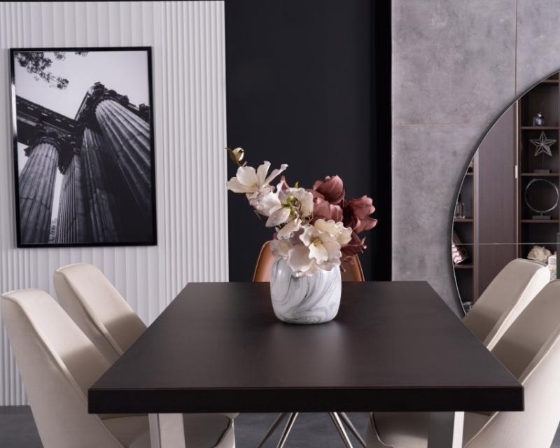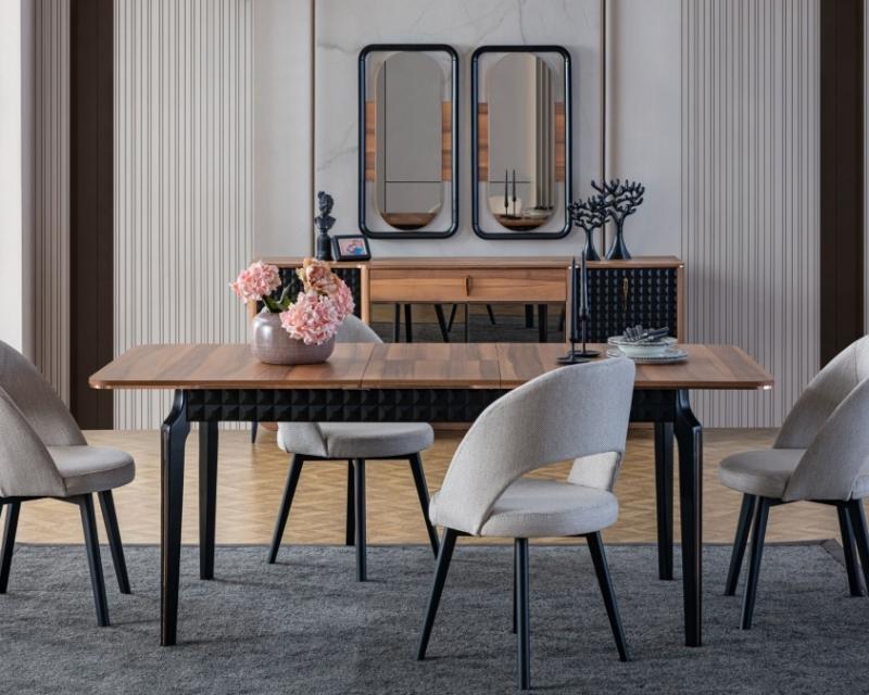 Jídelní stůl s širokým vnitřním prostorem, který je vhodný pro ukládání nádobí.