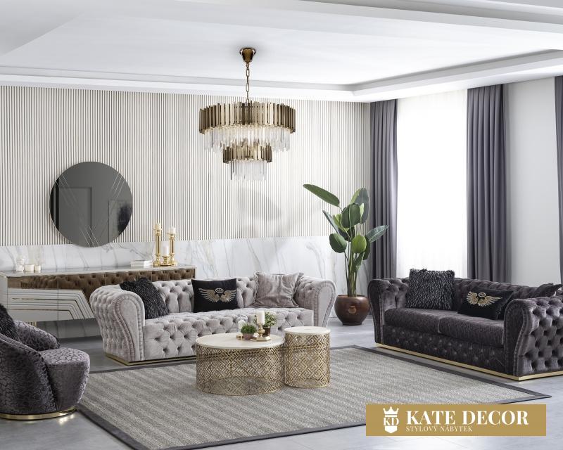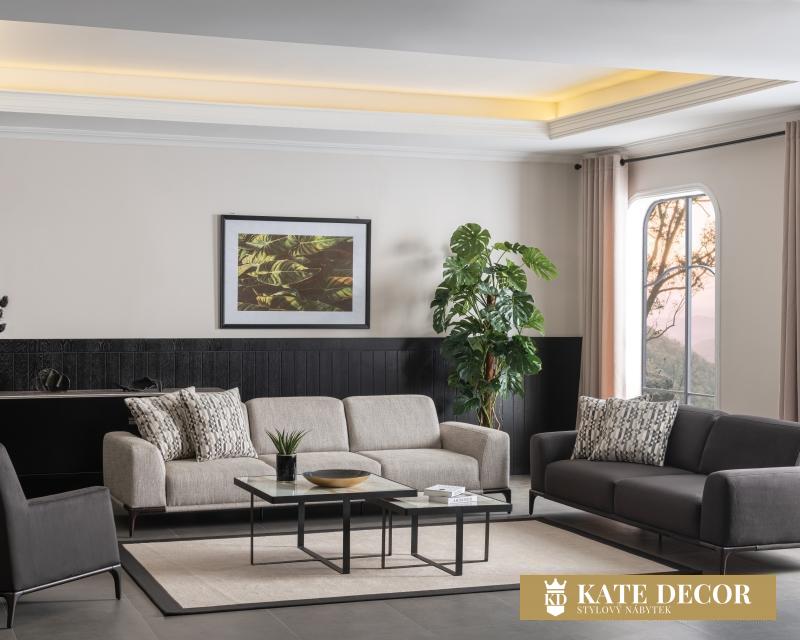 – třímístná pohovka – 2 kus + 4 polštáře;