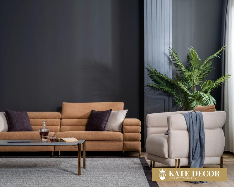 – třímístná pohovka – 2 kus + 4 polštáře;