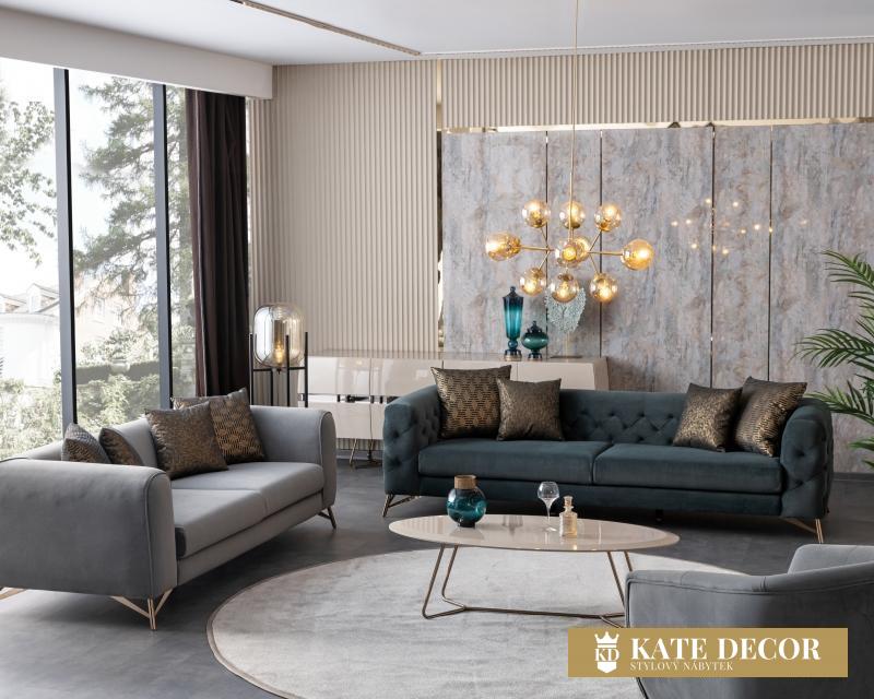 – třímístná pohovka – 2 kus + 4 polštáře;