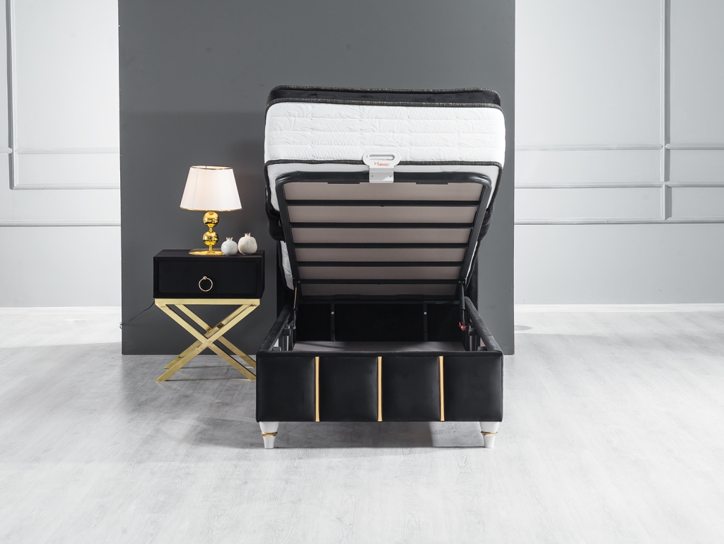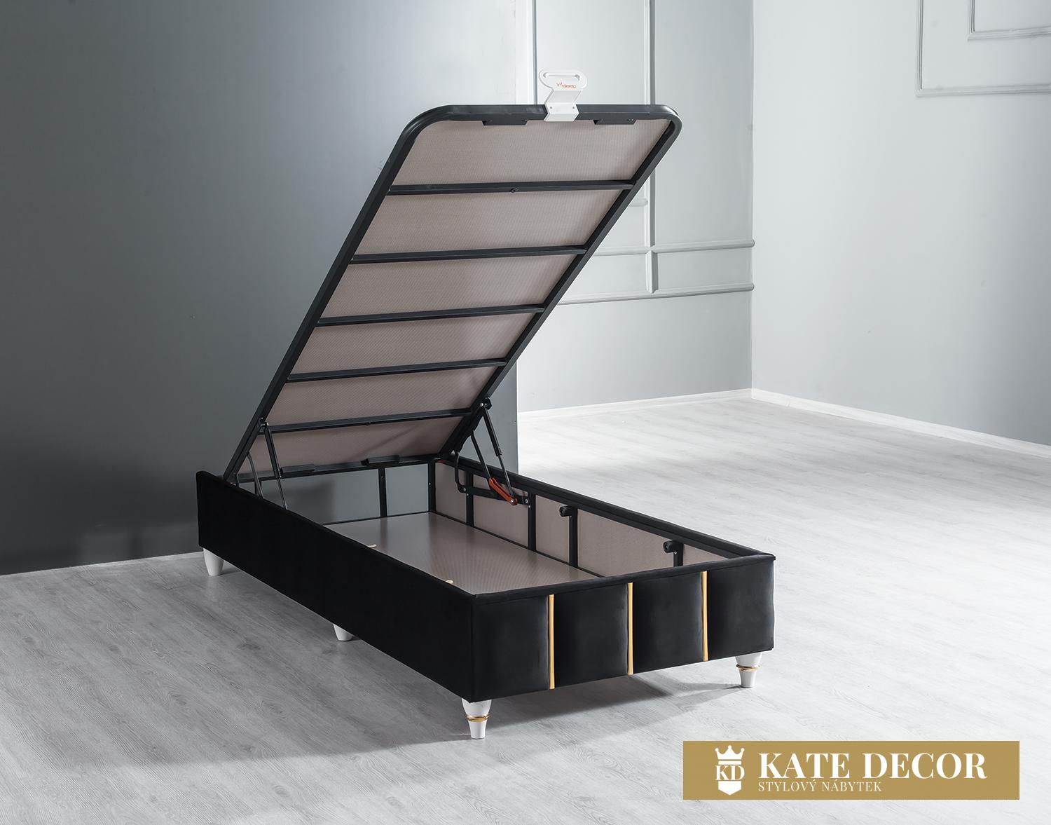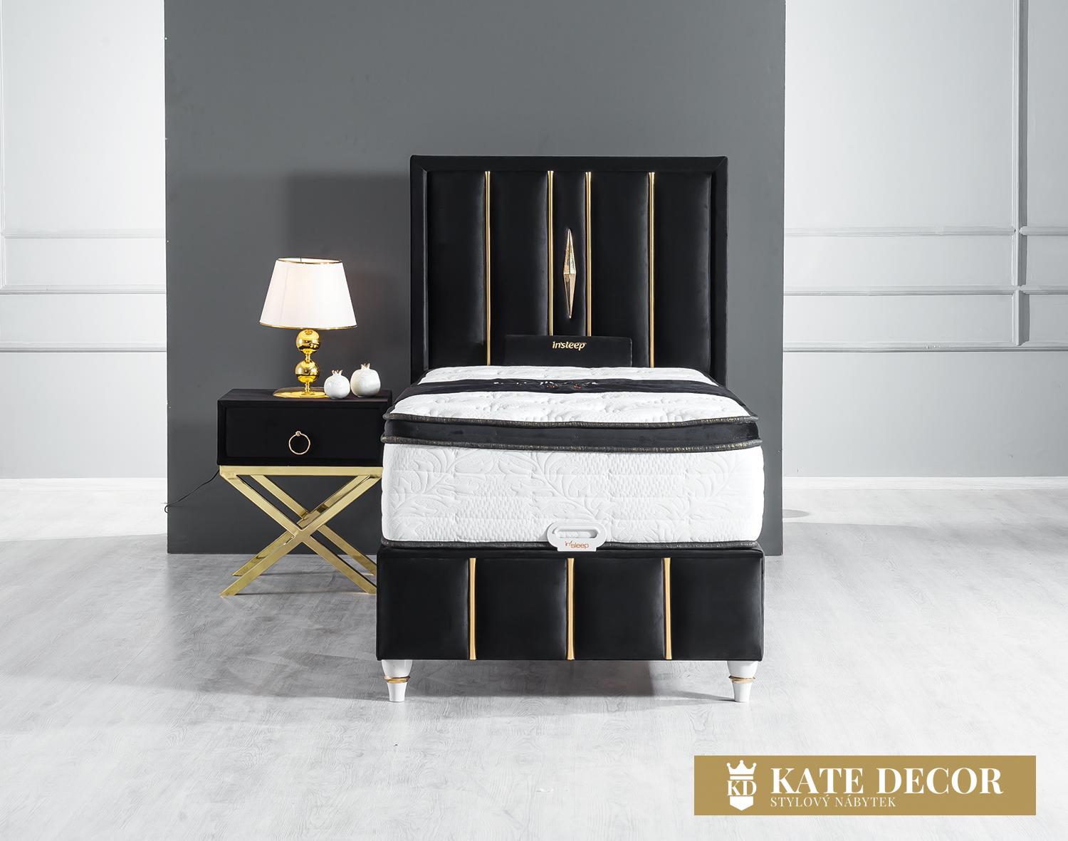 Pokračujeme v demonstraci našeho rozdílu ve speciálně navržených funkčních roštech a čelech postelí, z nichž každé má jiný tvar a styl. Tato postel, která patří do série GOLDEN, svým komfortem a vynikajícím zpracováním nabídne klidný spánek v ložnici Vašich dětí. Velmi luxusní, stylová a elegantní postel GOLDEN s výrazným čelem zdobený řasením a zlatými kovovými detaily je kouzelná jako letní noc v Orientu plná záře světel. Poskytuje pohodlí Vašemu tělu a soukromí Vaší duši. Pečlivě promyšlené prvky povyšují celkový design na vyšší třídu a dodávají celému prostoru vizuální originalitu a přitažlivost. S touto postelí lze stvořit pokoj, ze kterého se Vám nechce odcházet. Pečlivě vybrané příjemné textilie i vzhled zlata v dekoraci působí luxusně. Jednoduchost čistých linií navozuje pocit luxus a soukromí. Postel GOLDEN je uvržená tak, aby Vám poskytla maximální pohodlí.