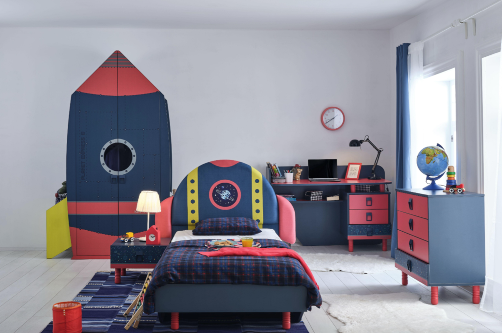 Ponořte své dítě každou noc do kouzelné vesmírné dobrodružství s naší dětskou postelí ve vesmírném stylu. Pohodlí, bezpečnost a sny jsou ztělesněny v každém detailu této postele. Dětská ložnicová sestava PLANET je svým stylem připravena upoutat pozornost malých chlapců. Materiály a látky použité při výrobě zaručují maximální požitek z pohodlí a útulnosti. Pokoj s láskou a teplem obejme Vaše nejmenší a bude jejich přítelem, který bude svědkem všech jejich tajemství i radostí.