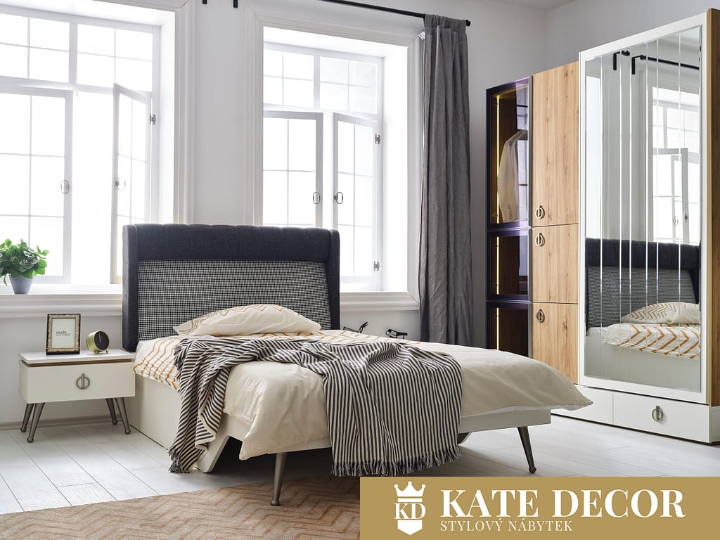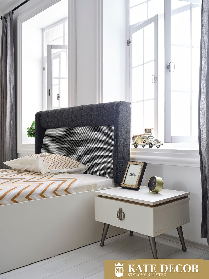 Dětská postel VISTA je tou správnou volbou pro dětský pokoj. Svým stylem a designem vytváří nejen svěží a útulnou atmosféru a skrze kvalitní materiály poskytuje bezpečný prostor pro hraní i učení. Je vyroben z 18 mm dřevotřískových profilů, které dále potvrzují odolnost nábytku. Můžete nám bez obav důvěřovat, protože se snažíme poskytovat kvalitní a stabilní produkty připravené k použití. Modernost s prvkem retro stylu přináší postel VISTA v kontrastu lehké bílé barvy s masivním antracitovým čelem, jehož bočnice poskytují objímající pocit většího soukromí. Správné a stabilní spojení čela se základnou zajišťuje spokojené užívání po mnoho let. Použitý materiál je snadno udržovatelný. Na tomto lůžku lze celý den lenošit a snít si o všech svých přání.