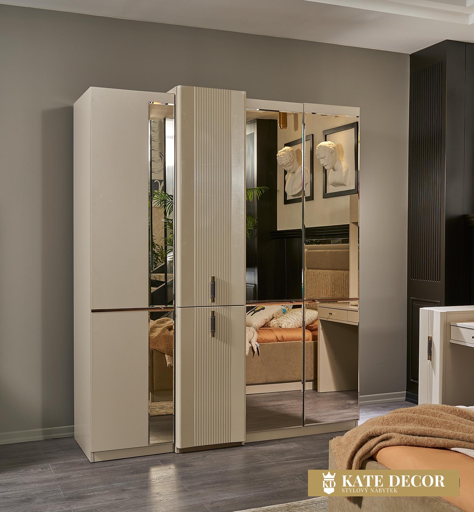 – šatní skříň se 2 posuvnými a jedněmi otevíracími dveřmi;