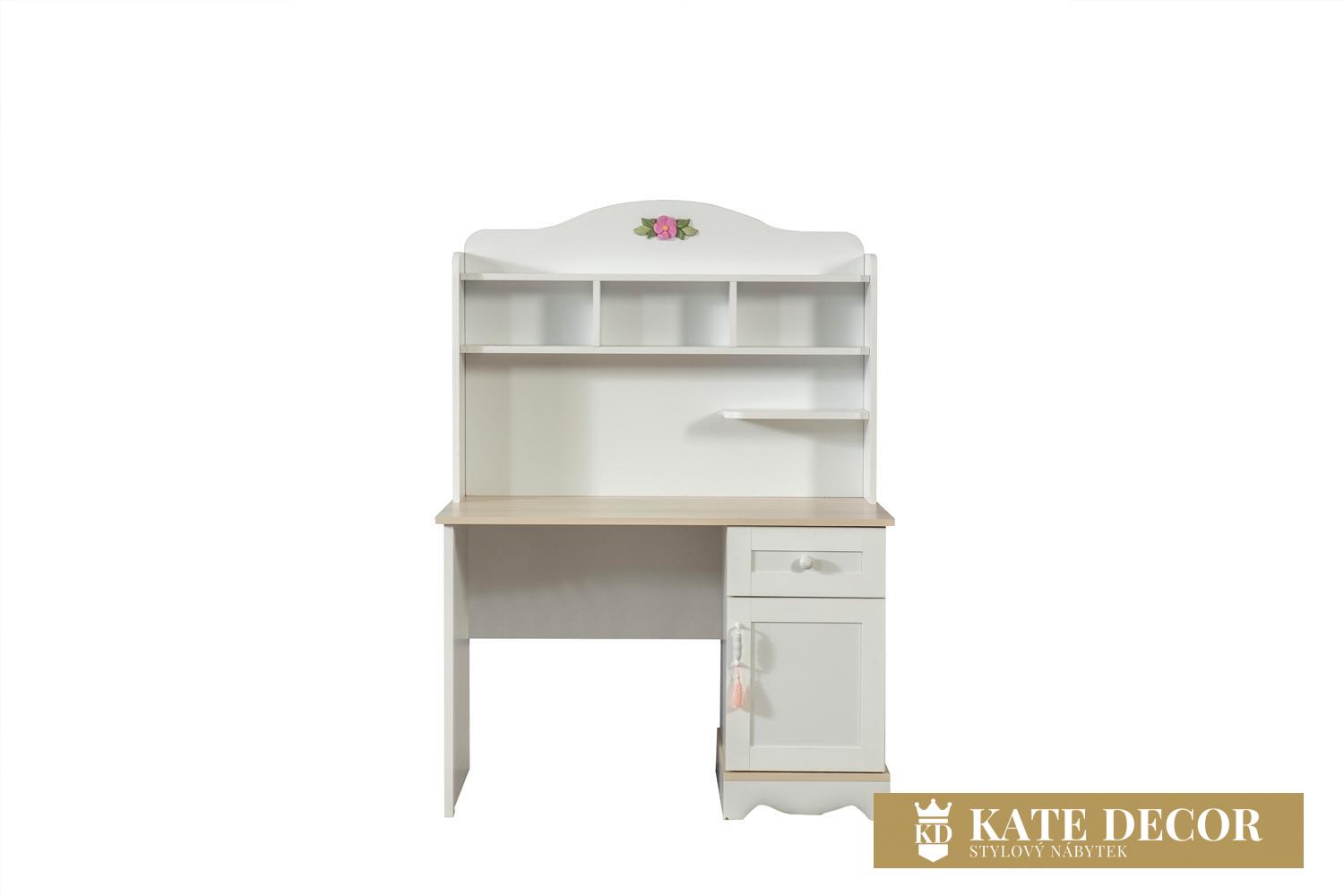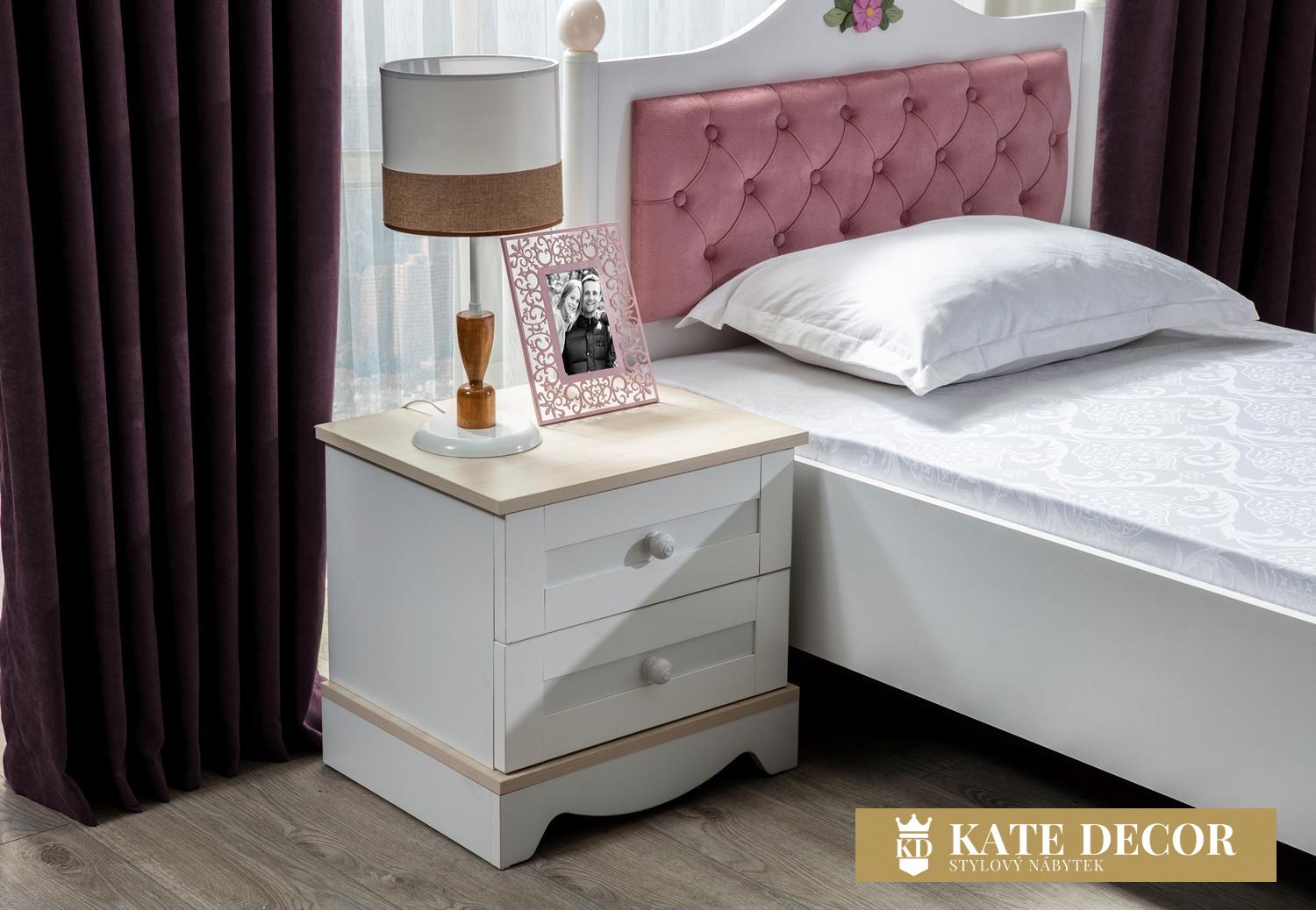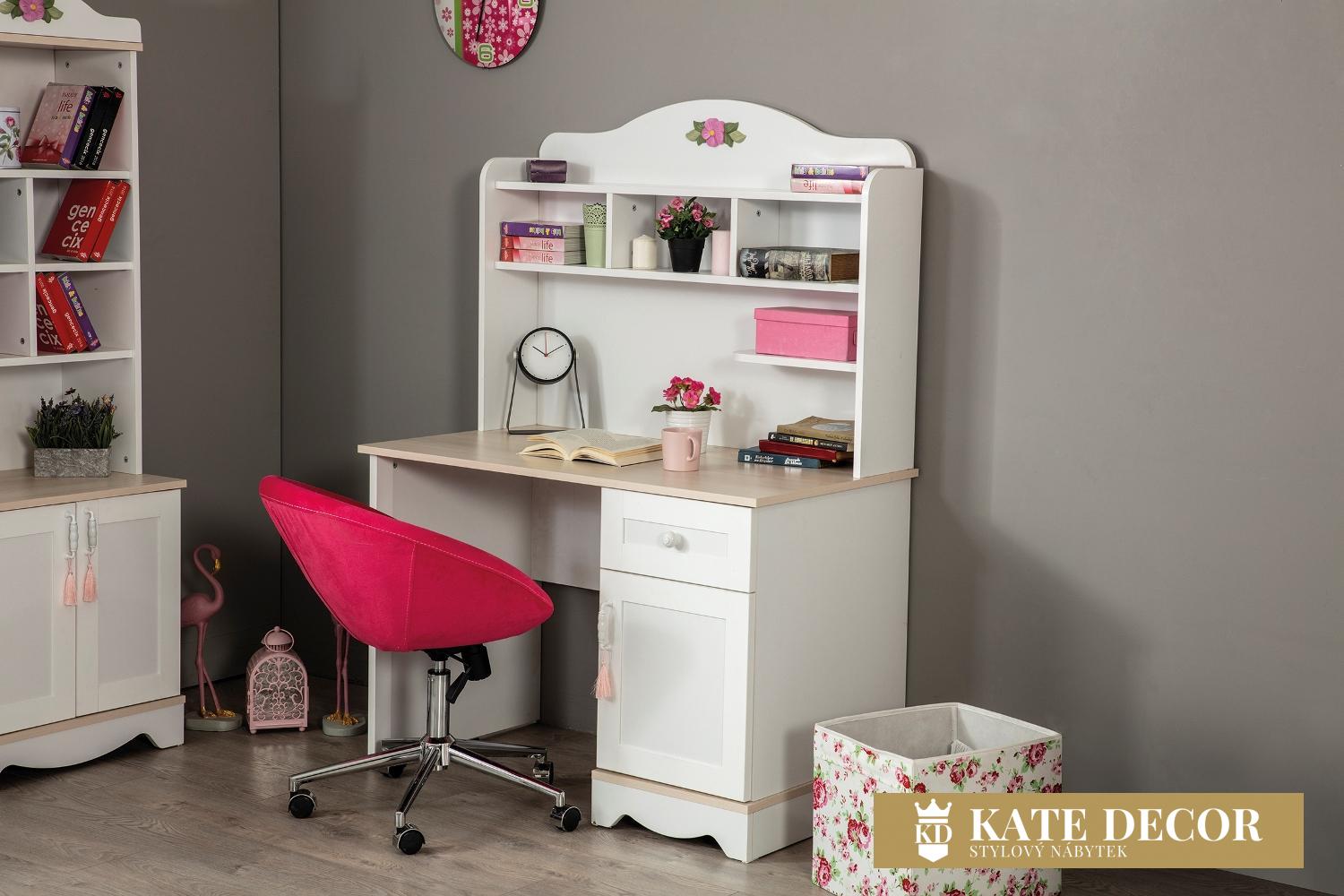Se sestavou dětského pokoje LINA navrhněte pokoj, ve kterém pocítíte maximální míru pohodlí a klidu. Děti si zaslouží vyrůstat s kvalitním nábytkem, učit se u funkčního psacího stolu a opírat se při čtení knihy o měkké čelo postele. My v KATEDECOR se snažíme toto vše poskytnout pouze jednou sadou. Nábytková sestava LINA je navržena v romantizujícím stylu pro Vaše malé princezny i dospívající slečny. Spojení bílé barvy s přírodním vzorem a odstínem dřeva působí harmonicky i na duši dítěte a navozuje vzdušnost v celém pokoji. Četnost úložného prostoru umožňuje zpřístupnit objem pomůcek Vašeho školáka a podnítí v něm smysl po organizaci práce a vyváženost mezi pracovními knihami i dekorativními hračkami.