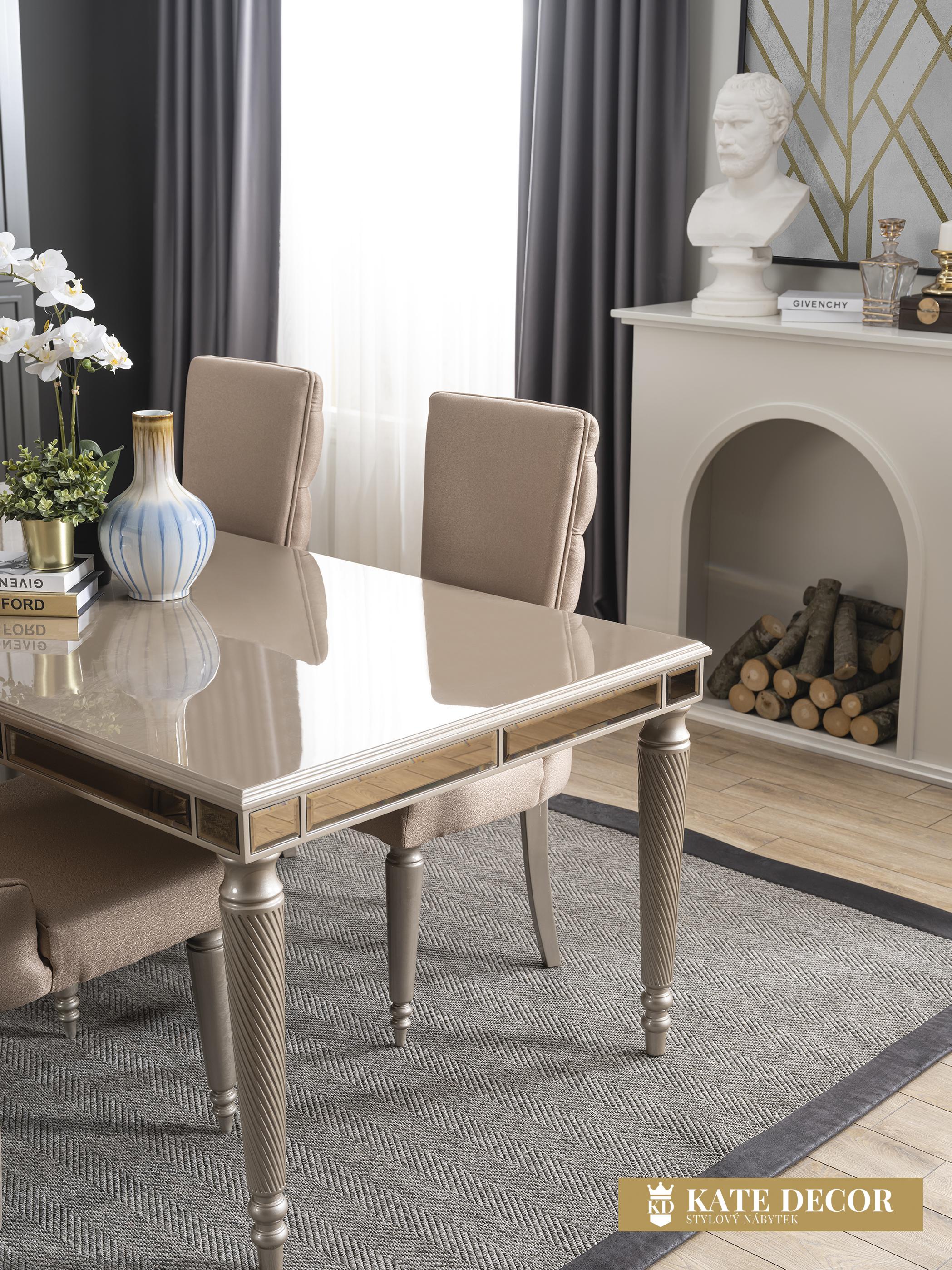 Někdy stačí k dosažení relaxační atmosféry jen správná kombinace nábytku, barev a harmonie. Pokud se chcete ponořit do pohodlí, měla by Vaše volba padnout na jídelnu CAVALLI. Díky takzvanému retro stylu dodá Vašemu pokoji atmosféru, kterou hledáte, ale zároveň ukáže Vaši třídu a estetické cítění. Detaily, tónování i designové akcenty zdůrazňují ladnost, která se snoubí s velkolepostí. Zabroušená kouřová zrcadla i aplikace, stříbrné úchytky, balustrádové zdobené nohy, jemný dekor dřeva po stranách stolku, zajímavá kompozice, to vše v sobě snoubí nábytková sestava CAVALLI, která Ve vašem pokoji vytváří celkový stylový a velmi luxusní dojem.