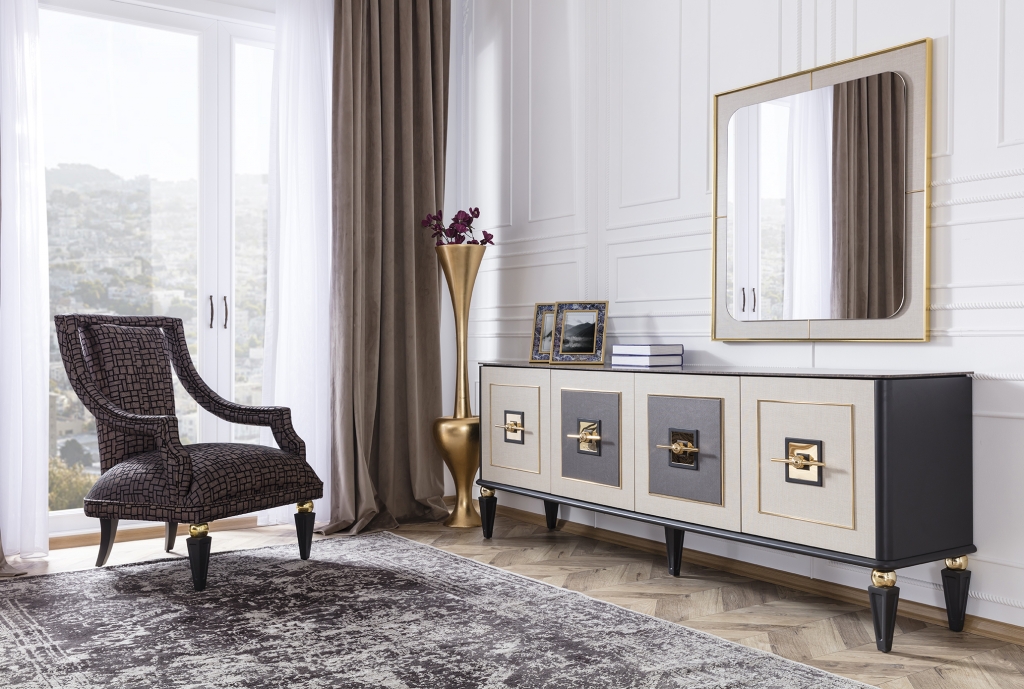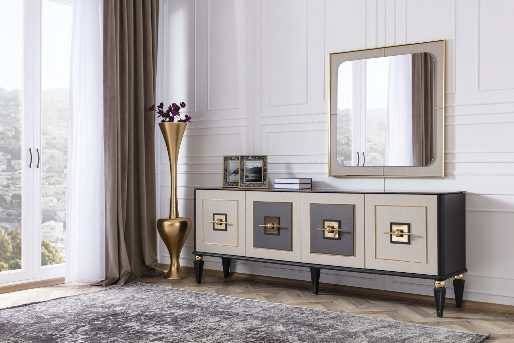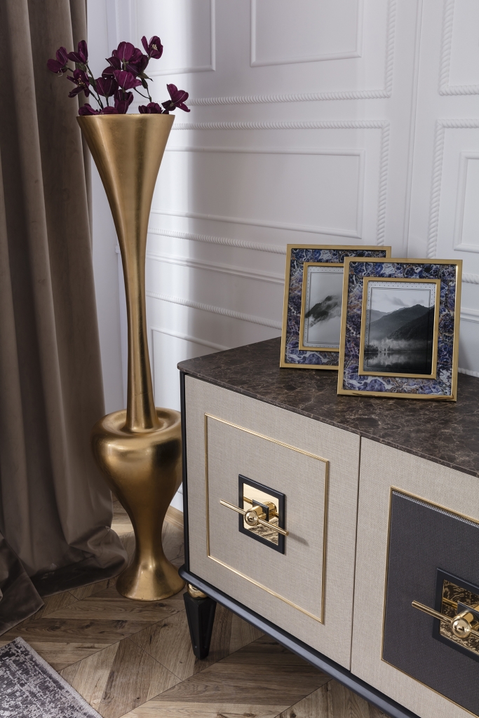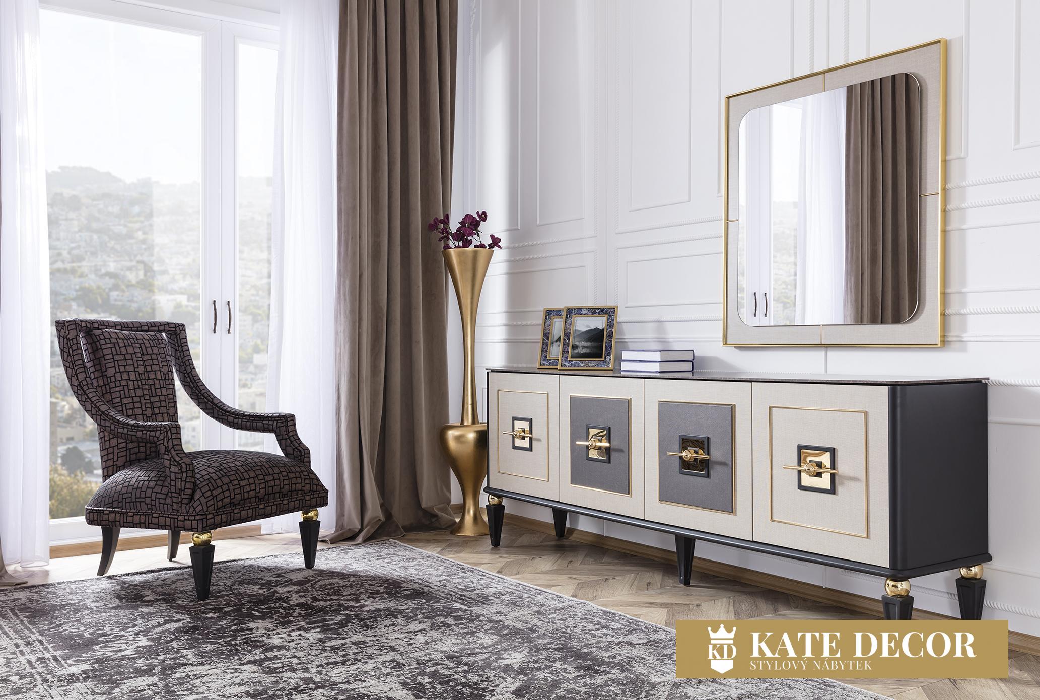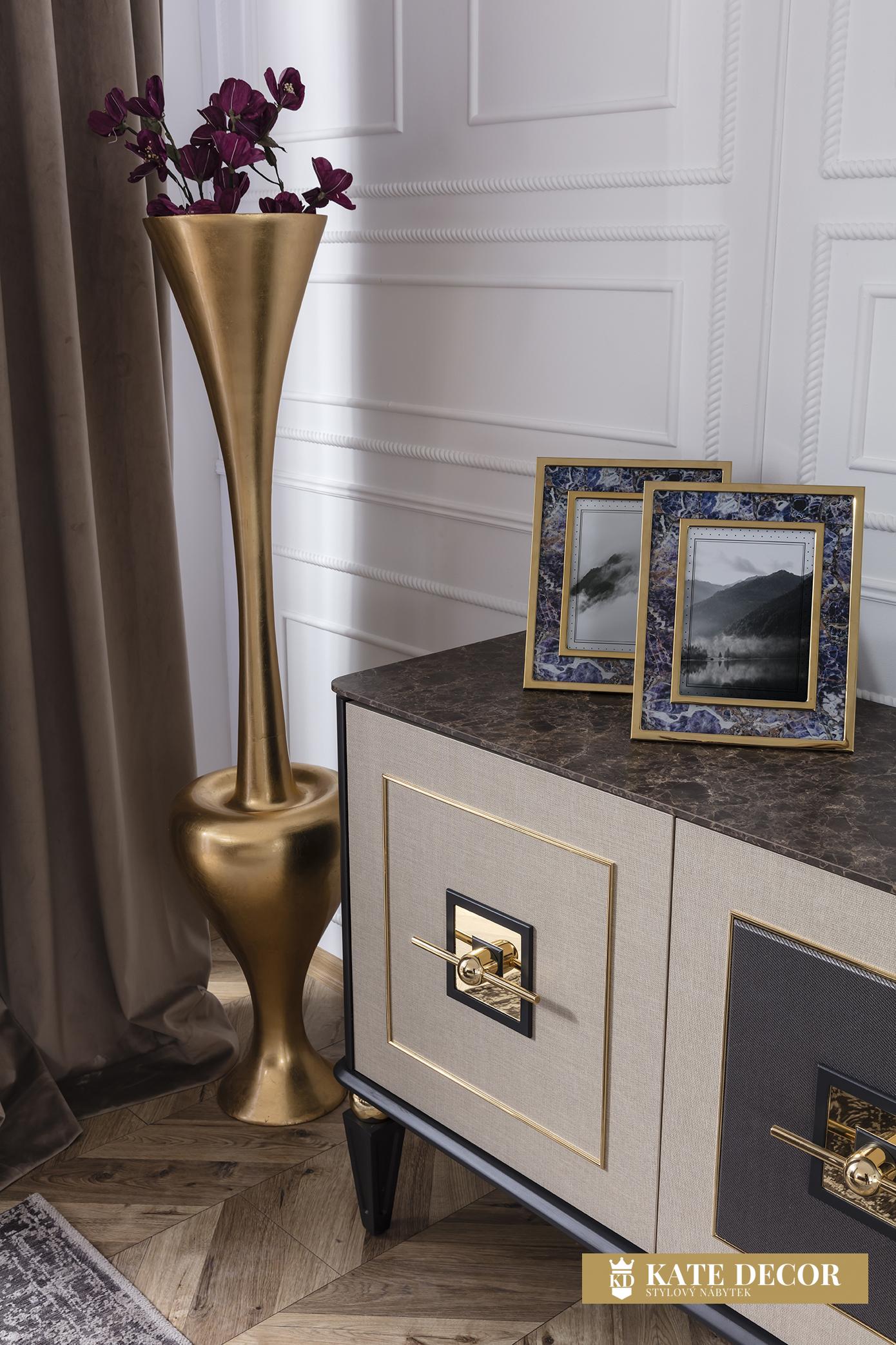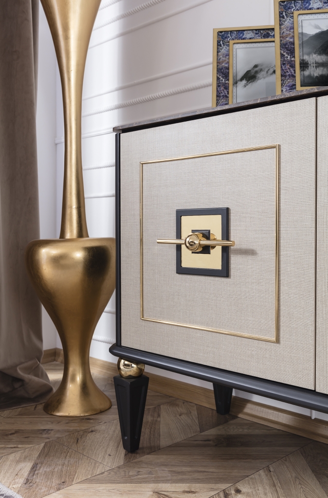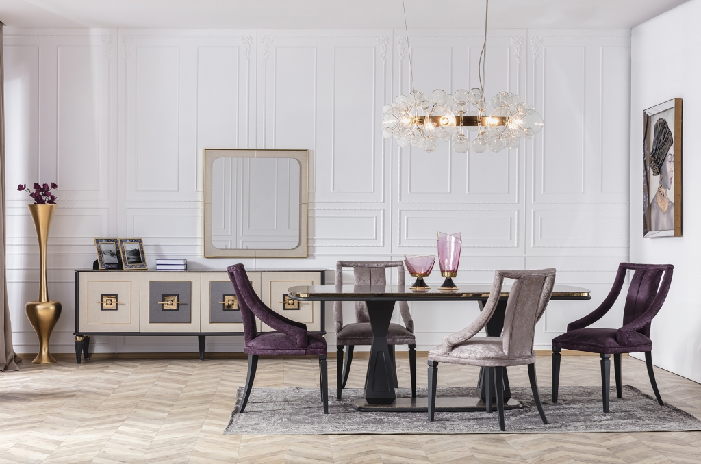 Jídelna GOLD potěší okouzlujícím, jemným a decentním designem. Je připraven poskytnout vám maximální pohodlí, útulnost a styl. Sada je jedním z našich nejudržitelnějších produktů, což zaručují vysoce kvalitní materiály a mechanismy použité při její výrobě. U čalounění se dává přednost měkké strukturované dovážené tkanině, díky níž se zvyšuje odolnost proti skvrnám a výrobky lze používat mnoho let bez deformace. Moderní zlacené detaily, mramorový dekor a harmonické barvy dotvářejí vizuální stránku soupravy a podtrhují její exkluzivitu.