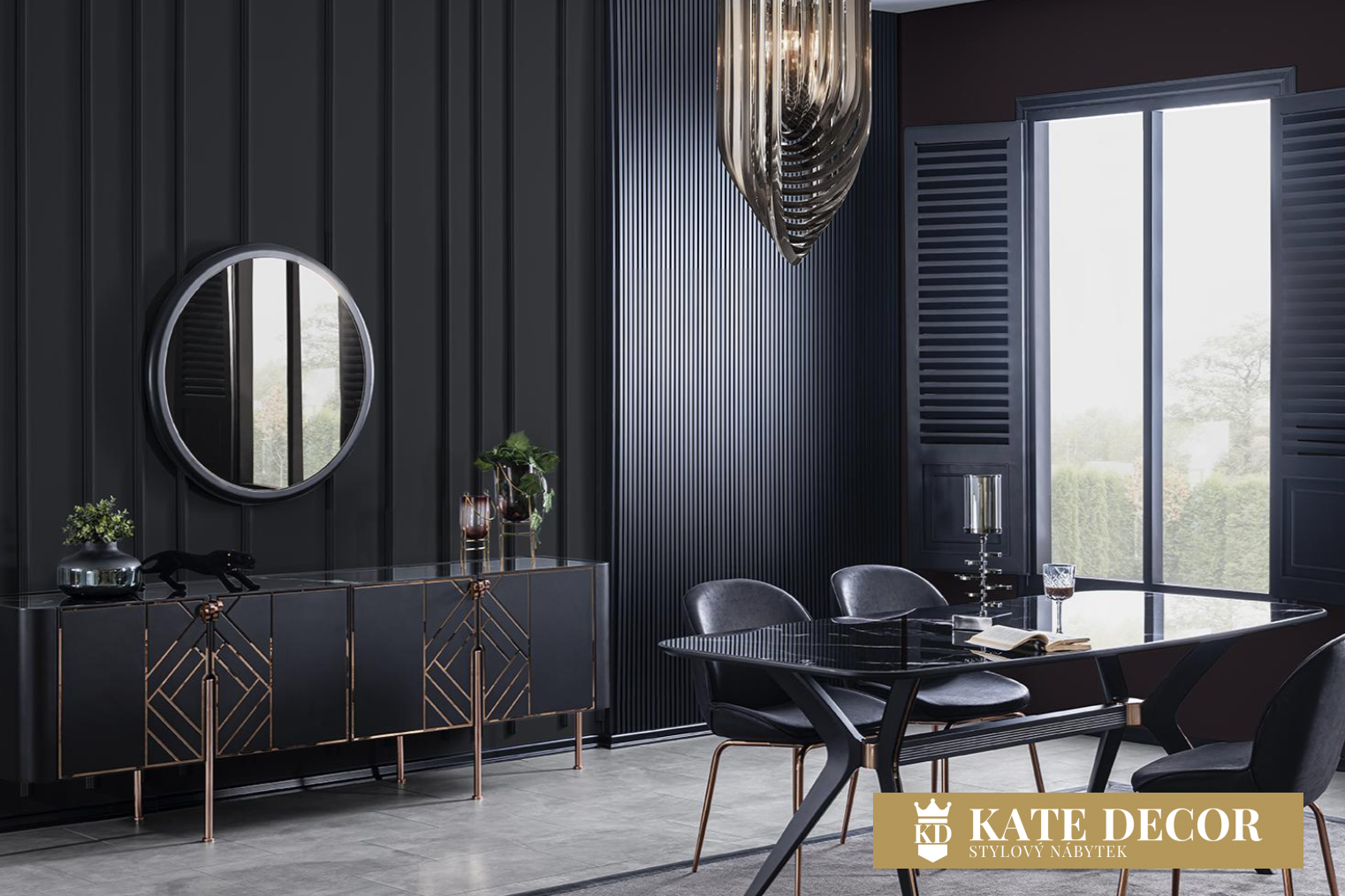 Jídelna LUCCA přitahuje pozornost svým lákavým stylem. Ručně vyráběné detaily mu dodávají na vzhledu a eleganci, nerezové kovové nohy a dekory však vytvářejí jinou atmosféru. Materiály MDF, měkké zdobené čalounění, antracitové detaily a moderní technologie použité při výrobě ukazují jedinečnost a udržitelnost výrobků.