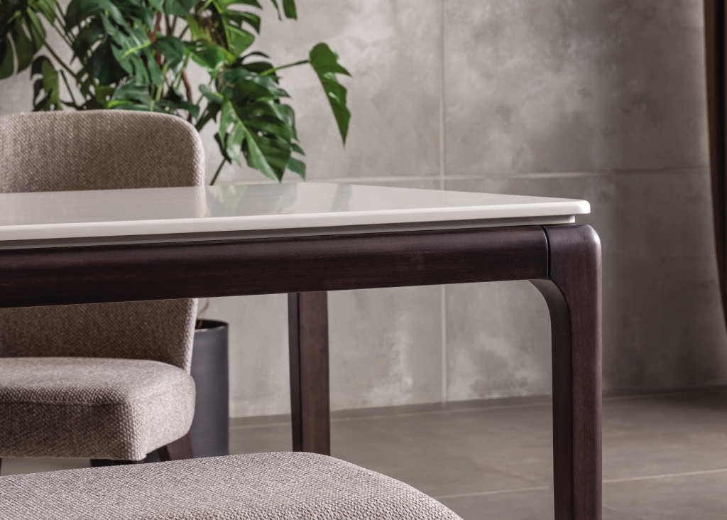 – lakované a lesklé povrchy příborníku a stolů z MDF;