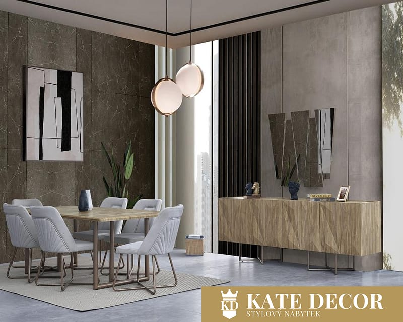 Jídelní souprava OSLO WALNUT je souprava, která je často zmiňována pro svou krásu a pohodlí. Pečlivě promyšlené prvky doplňují design a dodávají místnosti vizuální přitažlivost. S tímto setem vytvoříte místnost, kterou nebudete chtít opustit. Uklidňující tóny vás okouzlí ještě víc. Jídelní souprava je navržena tak, aby Vám poskytovala maximální luxus a pohodlí, a je připravena stát se součástí Vašeho života.
