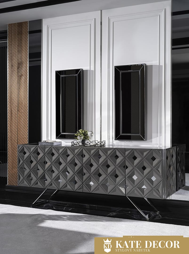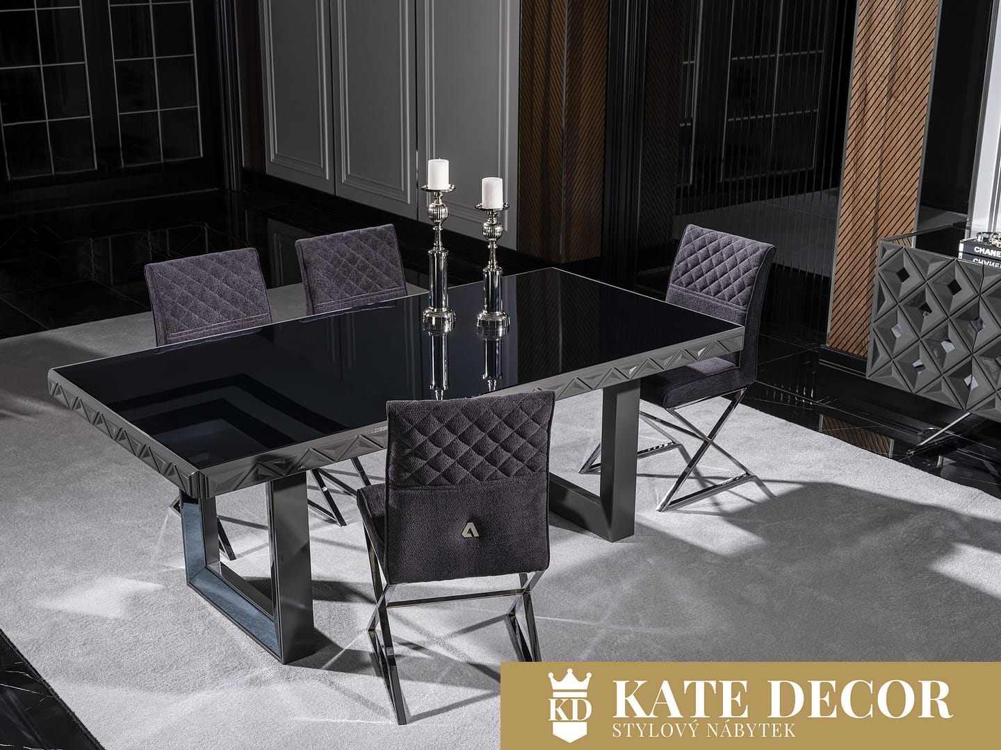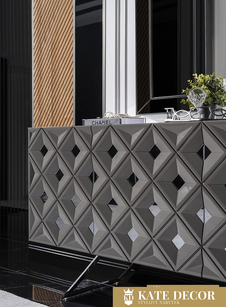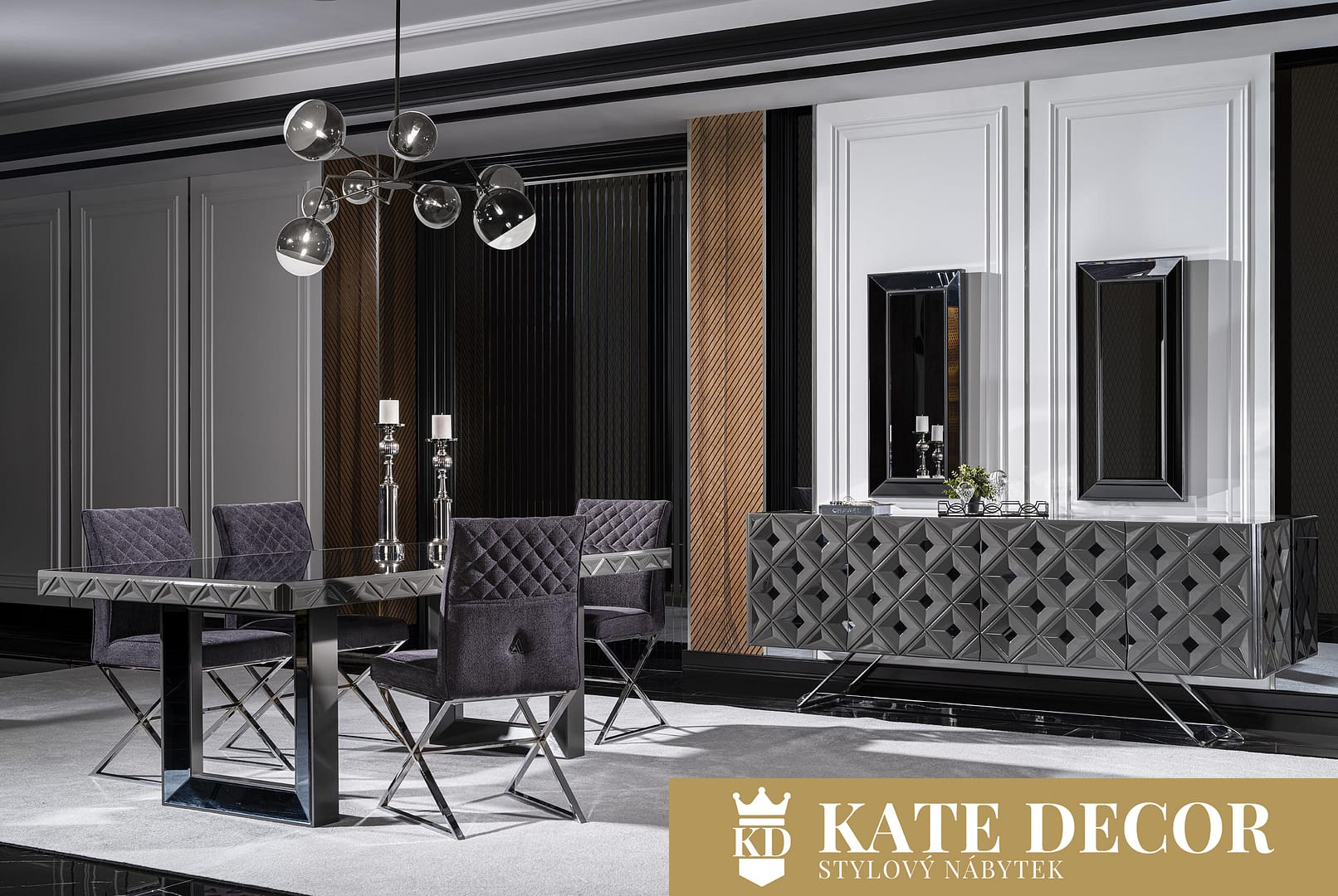 Jídelna VIONA se vyznačuje výrazným designem a je připravena stát se nepostradatelnou součástí Vašeho domova. Úžasná harmonie ecru a černé barvy vytváří okouzlující atmosféru a umocňuje jejich uklidňující účinek. Kromě útulné atmosféry získá Váš pokoj spolu se zrcadlovými aplikacemi, antracitovými detaily a jedinečným designem stylový a estetický vzhled. Sada je vyrobena z materiálů MDF, vysoce kvalitních mechanismů a měkké textilie odolné proti skvrnám, což zaručuje dlouhodobé používání bez deformací.
