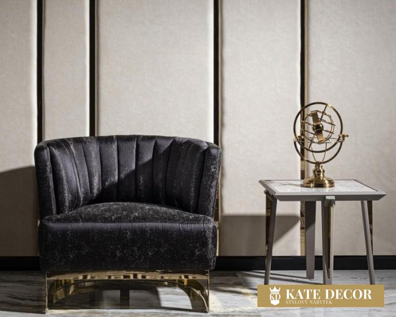 – antracitové motivy a zlacené detaily;