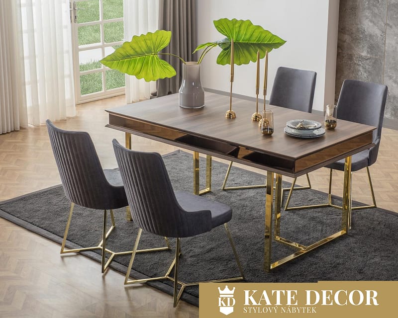 Stůl AQUA Vás chce svými designovými detaily seznámit s moderností a pohodlím. Díky němu zažijete pocity, s nimiž jste se dosud nesetkali. Tento jídelní stůl zvýrazní Váš vkus, styl a úroveň. Materiály MDF, antracitové detaily a moderní technologie použité při výrobě ukazují jedinečnost a udržitelnost výrobků. Jídelní stůl AQUA přináší netradiční design v trojkombinaci antracitové, bílé a stříbrné. Velkolepé zdobné dominantní řasení je projevem vnitřní síly a bezpečí, kvalitní látka společně čistě bílou barvou nabízí každodenní komfort i útulnost, kterou plastické a stříbrné kovové detaily ještě více pozvedávají.