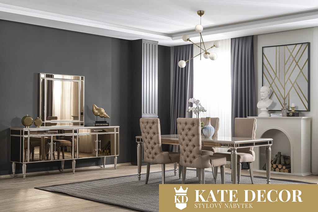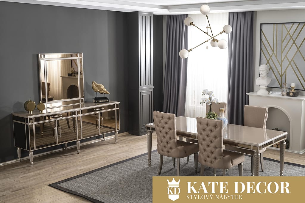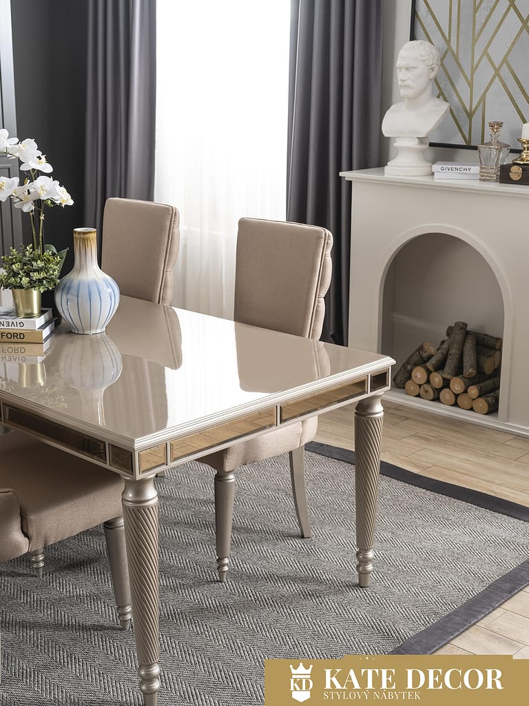 Někdy stačí k dosažení relaxační atmosféry jen správná kombinace nábytku, barev a harmonie. Pokud se chcete ponořit do pohodlí, měli byste se rozhodnout pro stůl CAVALLI. S takzvanou retro stylizací sice dodá Vašemu pokoji atmosféru, kterou hledáte, ale zároveň ukáže vaši třídu a estetické cítění. Detaily, tónování i designové akcenty zdůrazňují ladnost, která se snoubí s velkolepostí. Zabroušené kouřové aplikace, balustrádové zdobené nohy i jemný dekor v zajímavé kompozici, to vše v sobě snoubí nábytková sestava CAVALLI, která ve Vašem pokoji vytváří celkový stylový a velmi luxusní dojem.