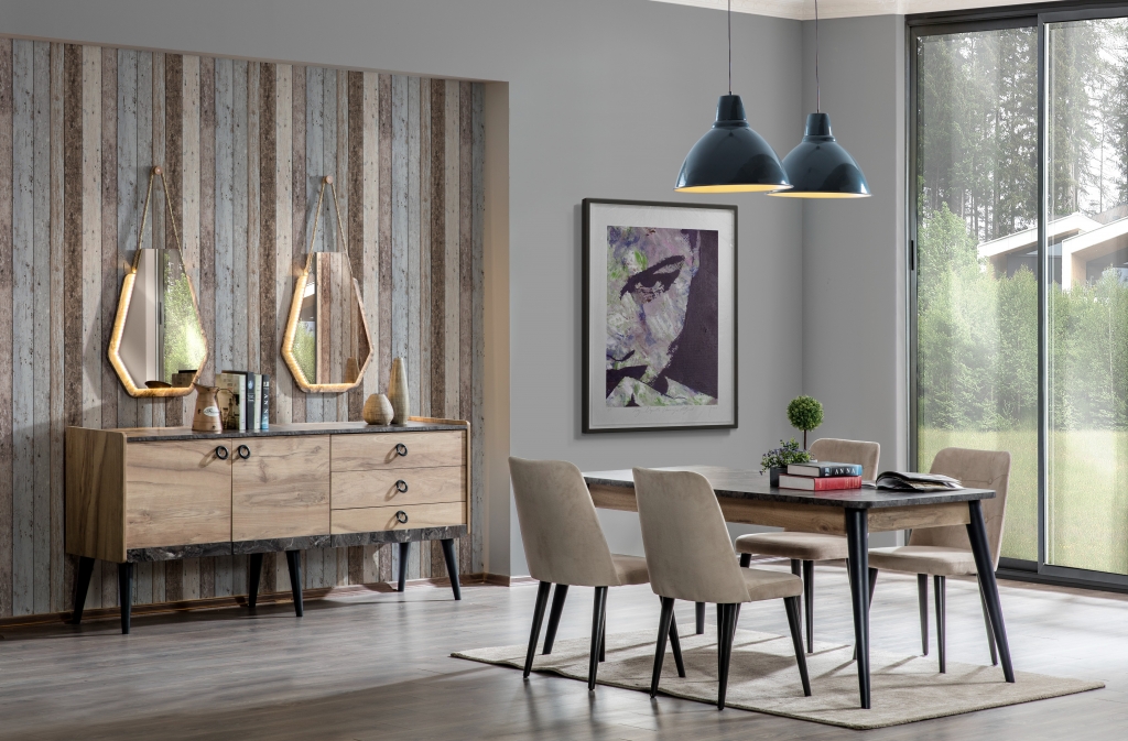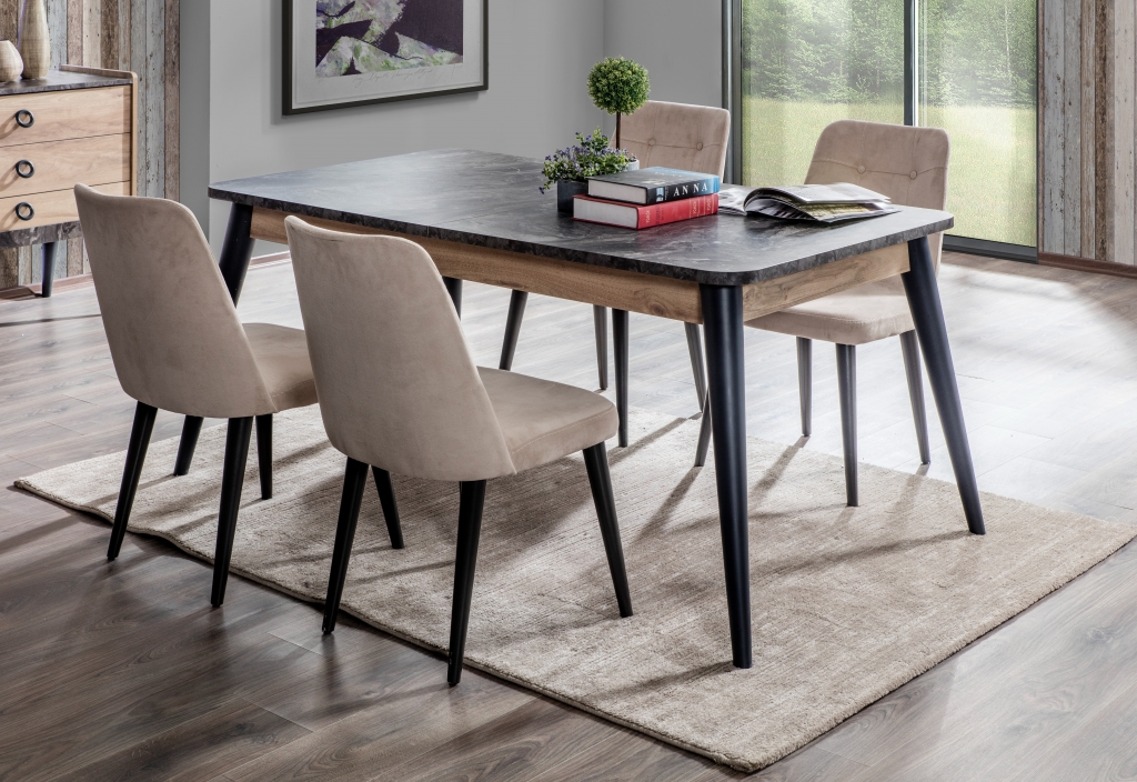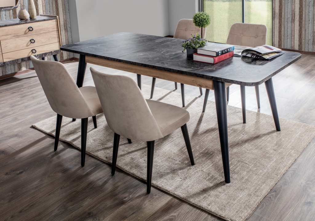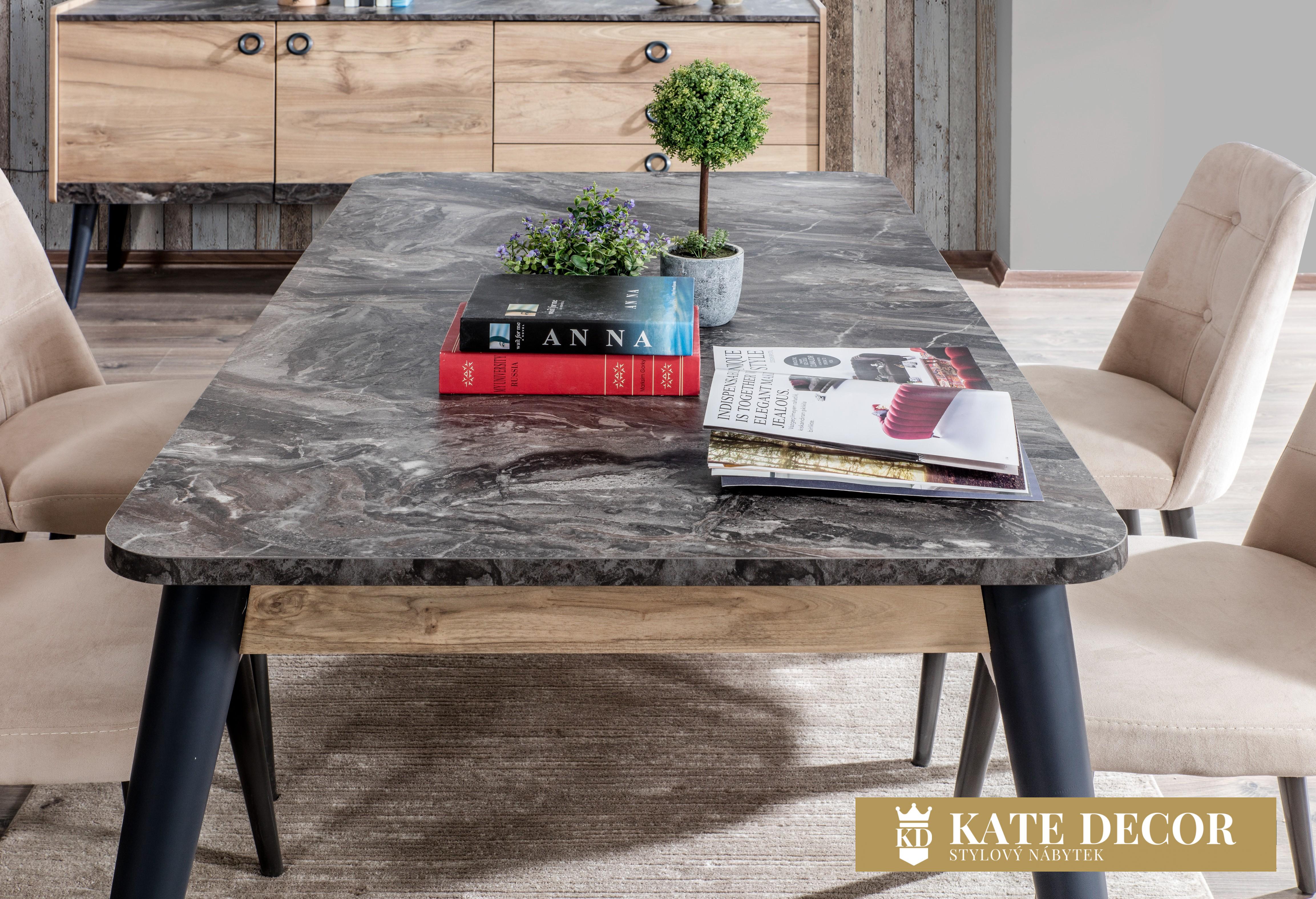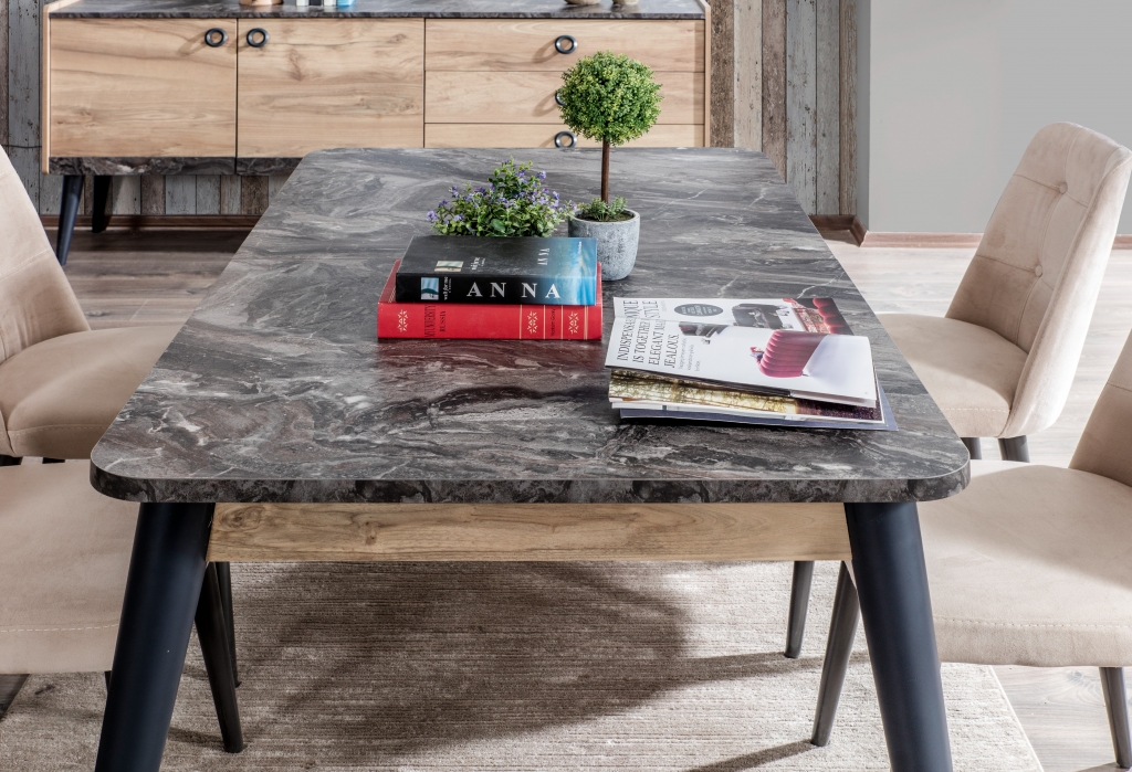 Pokud chcete pocítit uklidňující sílu přírody, představujeme Vám stůl GOLD, který veškerou pozornost soustředí na dřevo. Teplo dřeva v kombinaci s jemnými nahými tóny vytváří pocit pohodlí, útulnosti a dodá Vám svěžest, jakmile vstoupíte do této místnosti. Industriální detaily, mramorové desky a dekory dále zkrášlují soupravu a dodávají jí moderní a estetický vzhled. Kromě vizuální elegance je tento výrobek zmiňován také pro své nepřekonatelné pohodlí a praktičnost.