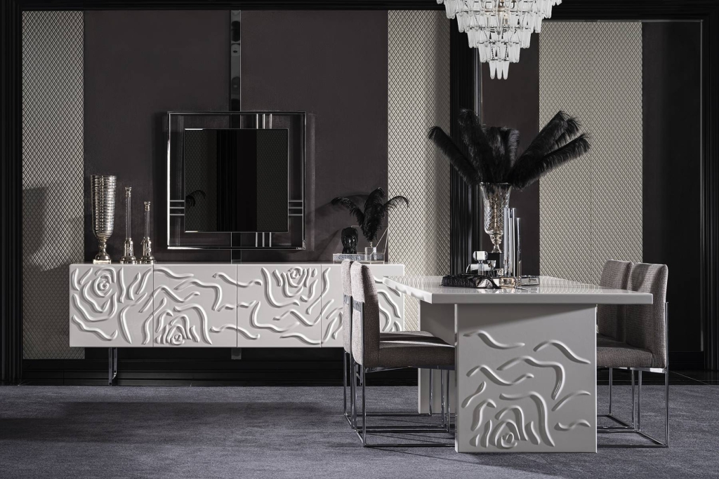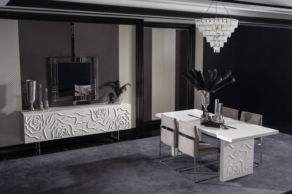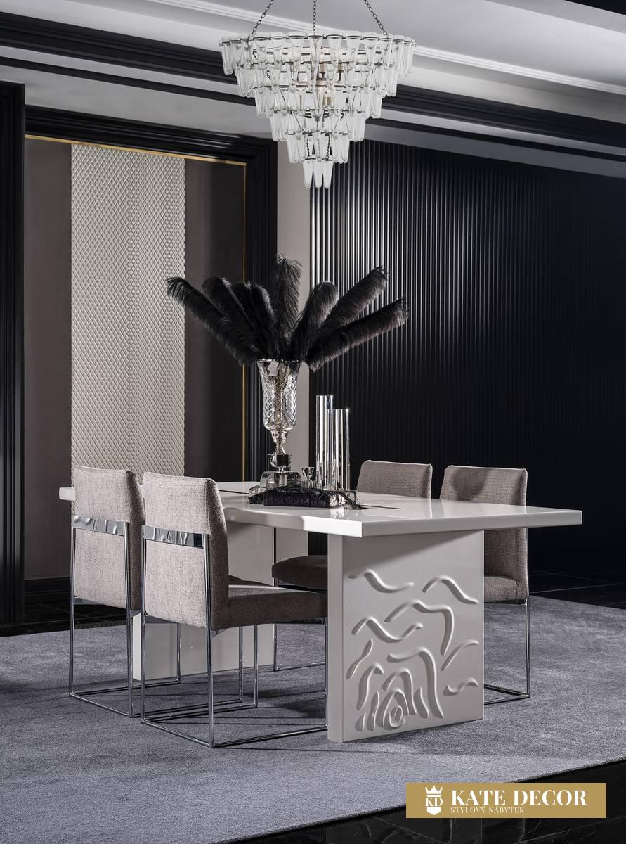 Stůl PARMA je souprava, která je výrazem kombinace moderního přístupu k dekoraci s poutavými designovými prvky. Výrobek ukazuje, jak se ženská designová linie snoubí s romantikou. Pokud o životě přemýšlíme jako o designu, je pro nás nejlepší a nejkrásnější design produktem Vašich snů. Stůl je určen pro ty, kteří dávají přednost jemným odstínům a chtějí do svého domova vnést svěžest a světlo.