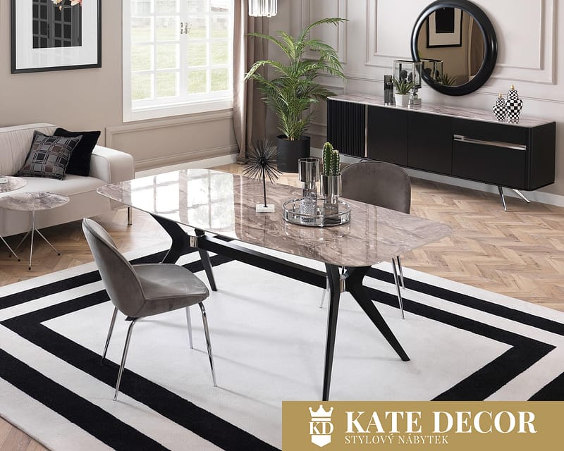 Jídelna BERETTA, která díky svým jedinečným designovým detailům odhaluje modernost a sofistikovanost, je připravena vytvořit stylovou kombinací detailů poutavou místnost. Je vyjádřením letošních módních a dekoračních trendů. Díky němu si můžete splnit své sny o moderním a stylovém pokoji. Jídelna BERETTA, obohacená o jemné detaily a pohodlí, Vám dává možnost vytvořit relaxační a vyrovnaný obytný prostor.