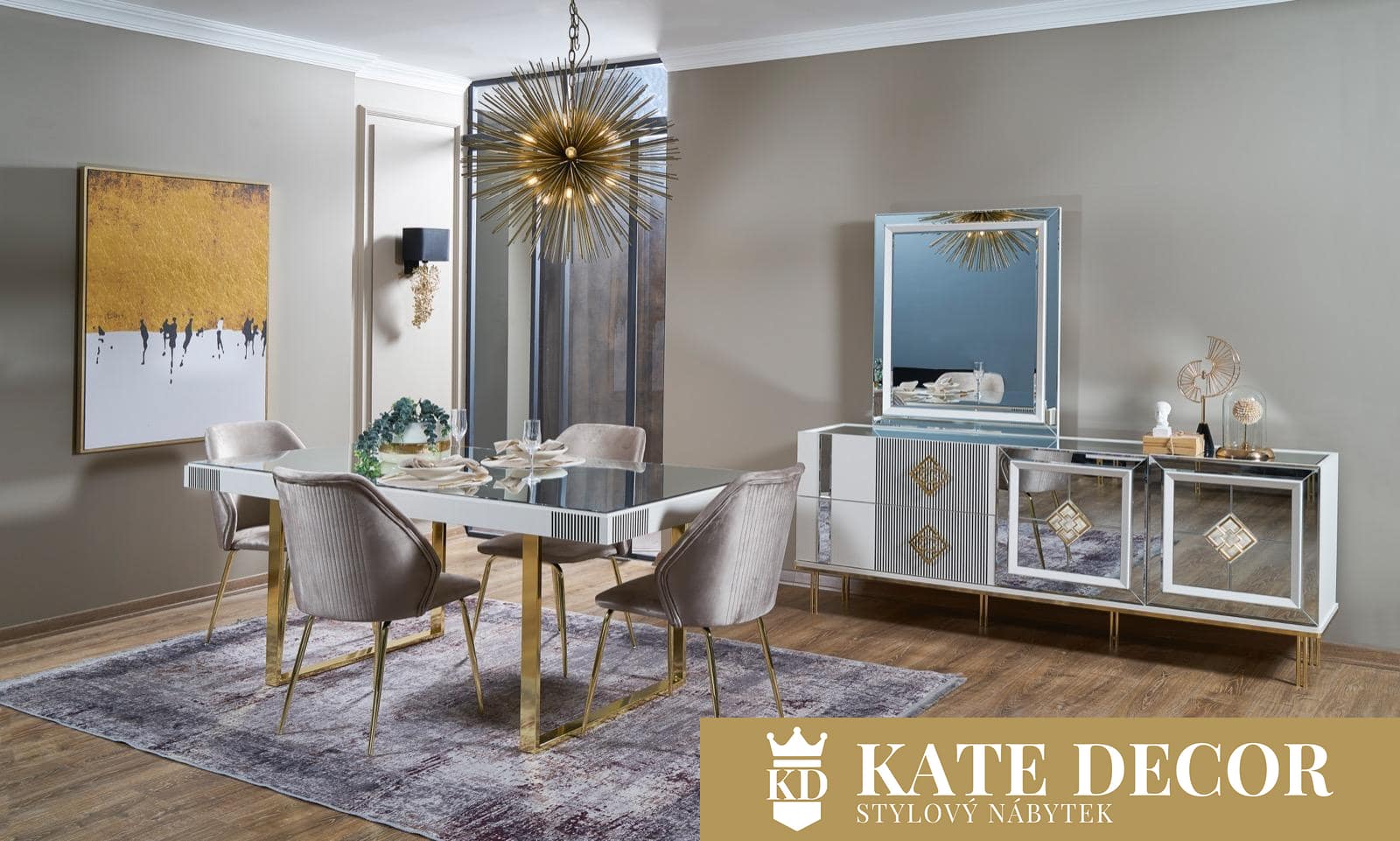 Kombinace šedé a bílé se stříbrnými a zlatými tóny a zrcadlem vytvoří ve Vašem pokoji jinou atmosféru. Sestava dodá Vašemu pokoji eleganci svými zrcadlovými aplikacemi, kovovými úchytkami a moderním designem, navíc Vám usnadní život díky svým funkčním detailům. Použité jemné dřevotřískové desky odolné proti poškrábání, materiály a mechanismy dokazují kvalitu výrobku a zaručují jeho dlouhodobé používání.