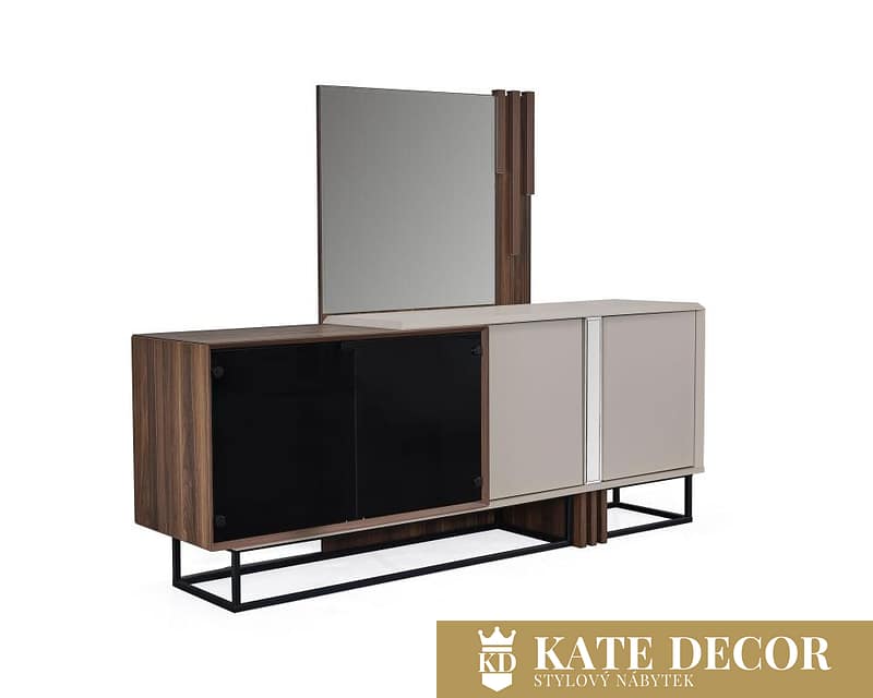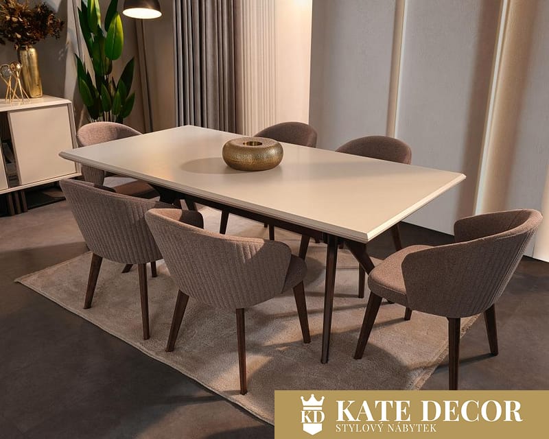 Jídelna PREO je produkt, který se Vám navždy vryje do paměti jediným pohledem. Díky detailům a designovým prvkům je tato souprava nenahraditelná. Při její výrobě bylo vše vybráno a promyšleno s velkou precizností. Zatímco použití barvy dřeva zvyšuje uklidňující účinek, zrcadlové aplikace vytvářejí pocit prostornosti a Váš pokoj bude působit esteticky krásně a svěže.