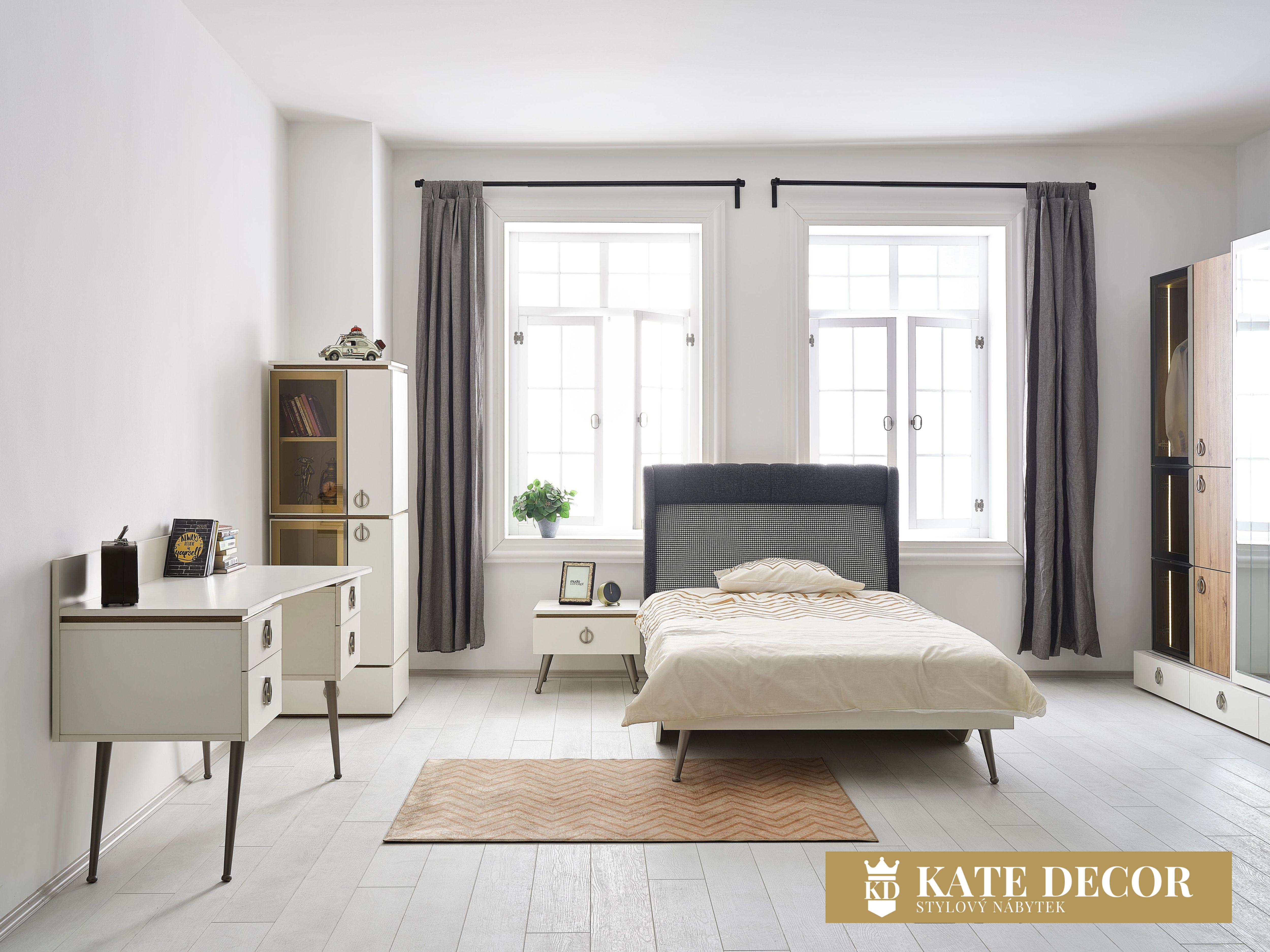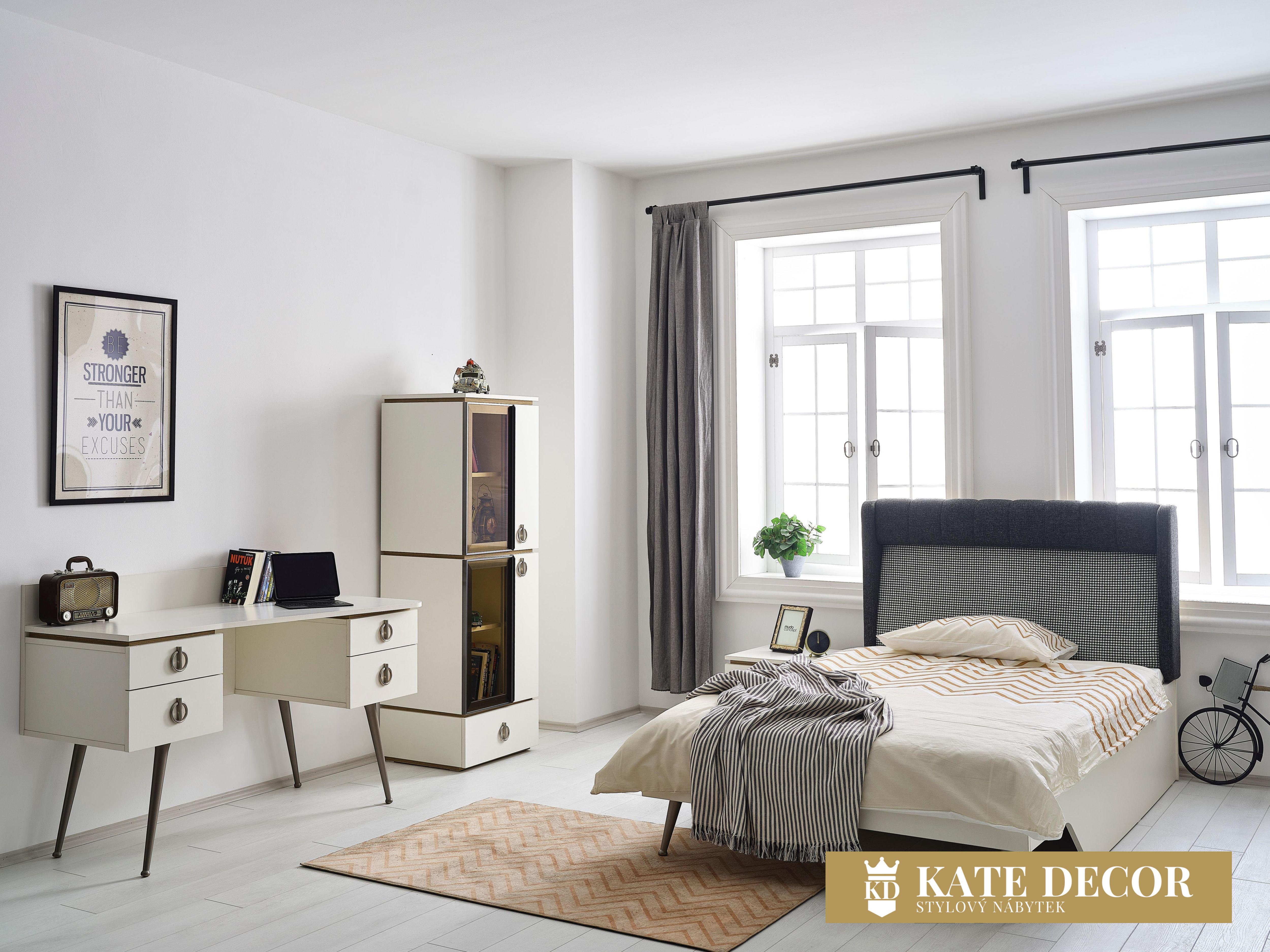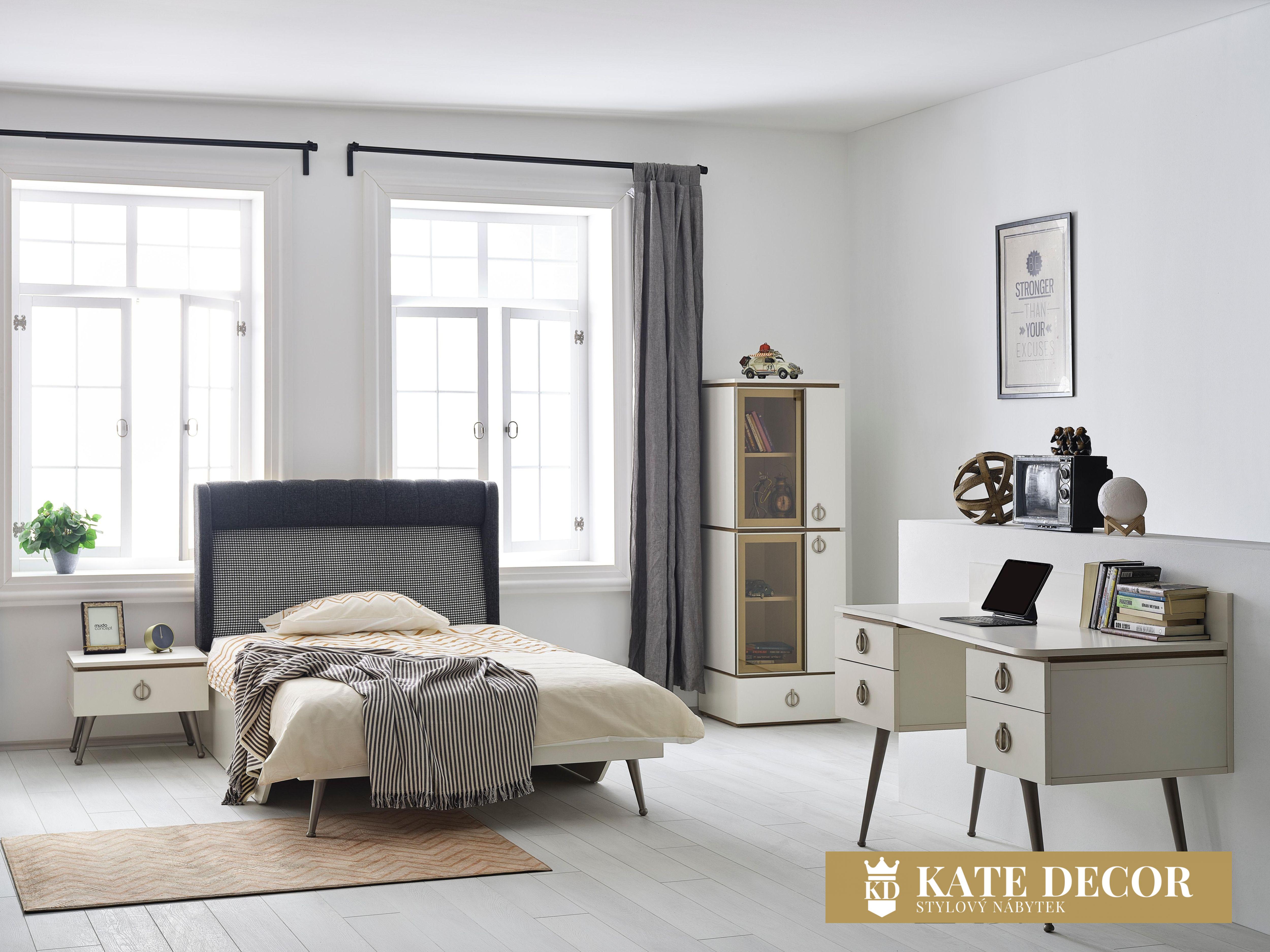 Sestava VISTA je tou nejvhodnější volbou do pokojíčku Vašeho dítěte. Svým stylem a designem, kromě vytvoření svěží a útulné atmosféry a skrze kvalitní materiály poskytuje bezpečný prostor pro hraní i učení. Je vyrobena z 18mm dřevotřískových profilů, které dále potvrzují odolnost nábytku. Můžete nám důvěřovat bez jakýchkoliv pochyb a obav, protože se snažíme poskytovat kvalitní a stabilní produkty připravené k použití. Modernost s prvkem retro stylu přináší kontrast lehkosti mezi světlou barvou, masivním antracitovým kovem úchytek a odolným kouřovým sklem dvířek. Dává pocit osobitého stylu i vkusu, vzdušnosti a elegance v prostoru Vašeho nebo dětského pokoje.