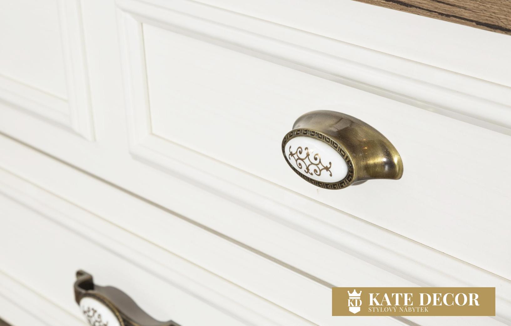 Sestava dětského pokoje COUNTRY je připravena poskytnout Vašim dětem maximální pohodlí a útulnost. Kombinace bílé barvy s dřevěnými tóny dodává soupravě jiný vzhled a zároveň vytváří relaxační atmosféru. Při jeho výrobě byl použit dřevotřískový materiál, který dokazuje odolnost výrobků. Můžete nám důvěřovat bez jakýchkoliv pochyb a obav, protože se snažíme poskytovat kvalitní a stabilní produkty připravené k použití. Komoda COUNTRY s nádechem jihofrancouzské oblasti Provance působí harmonicky na každého dospělého i na duši dítěte. Plastické zdobení čela, patinované porcelánové úchytky s květinovým dekorem, kombinace bílé barvy v matu s vysokým leskem horní desky ořechového odstínu dřeva v přírodním dekoru povzbuzuje kreativitu a utváří vkus i budoucí osobní styl Váš i Vašeho dítěte.