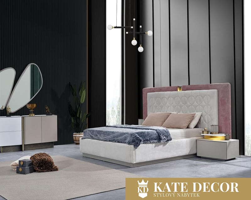 Ložnice DEFNE vyzdvihuje svůj styl a eleganci díky harmonii barev a designovým prvkům. Díky použitým látkám, zrcadlovým aplikacím se ocitnete v místnosti, jejíž atmosféra Vás přenese do moderního, uvolněného a pohodlného prostředí. Díky použitým materiálům MDF, dřevotřískovým deskám a kvalitním mechanismům Vám poskytne možnost užívat si tento pocit a pohodlí po mnoho let.