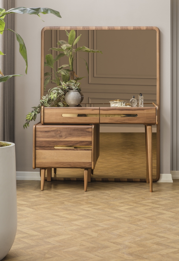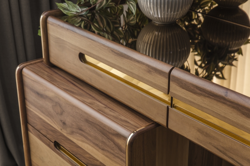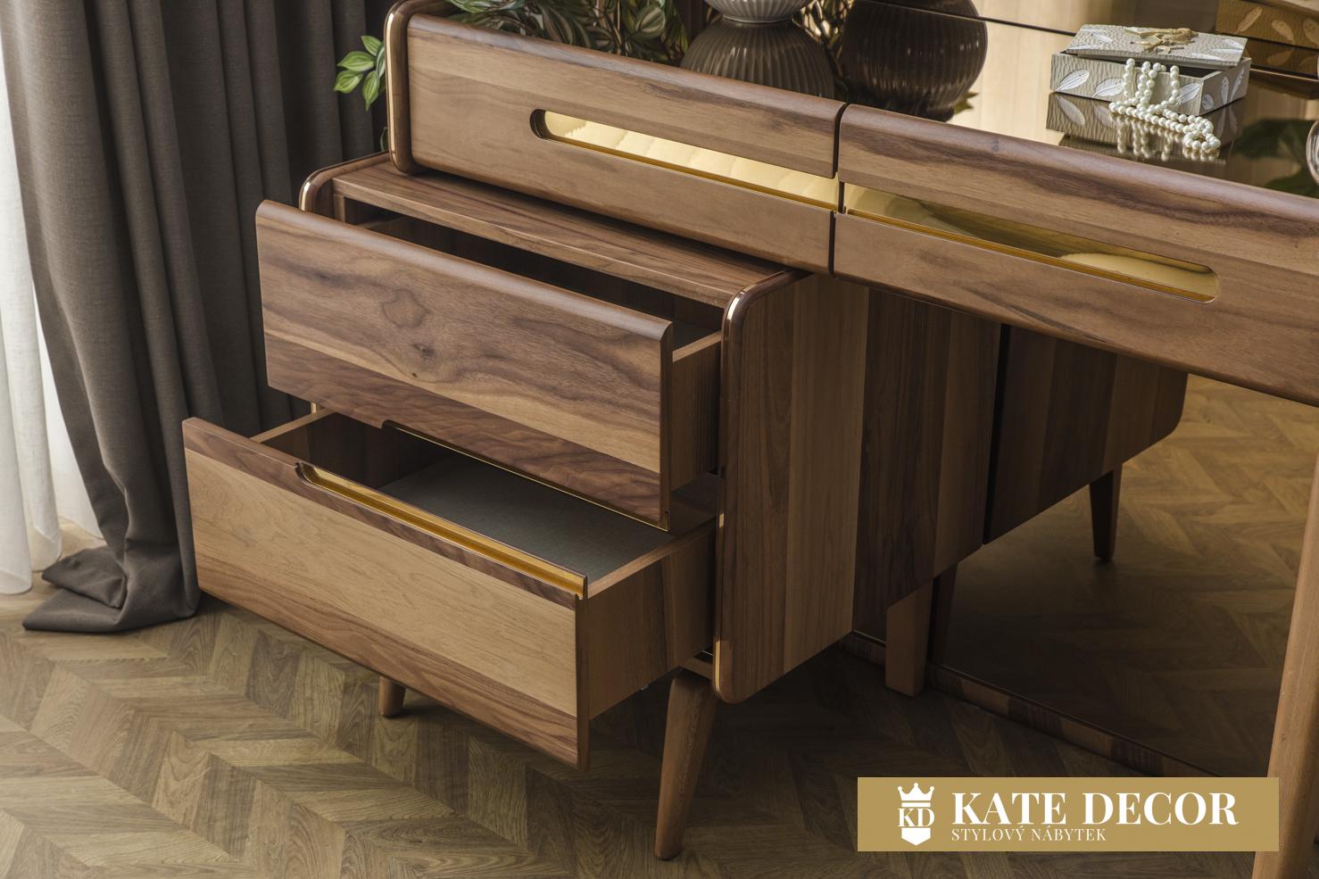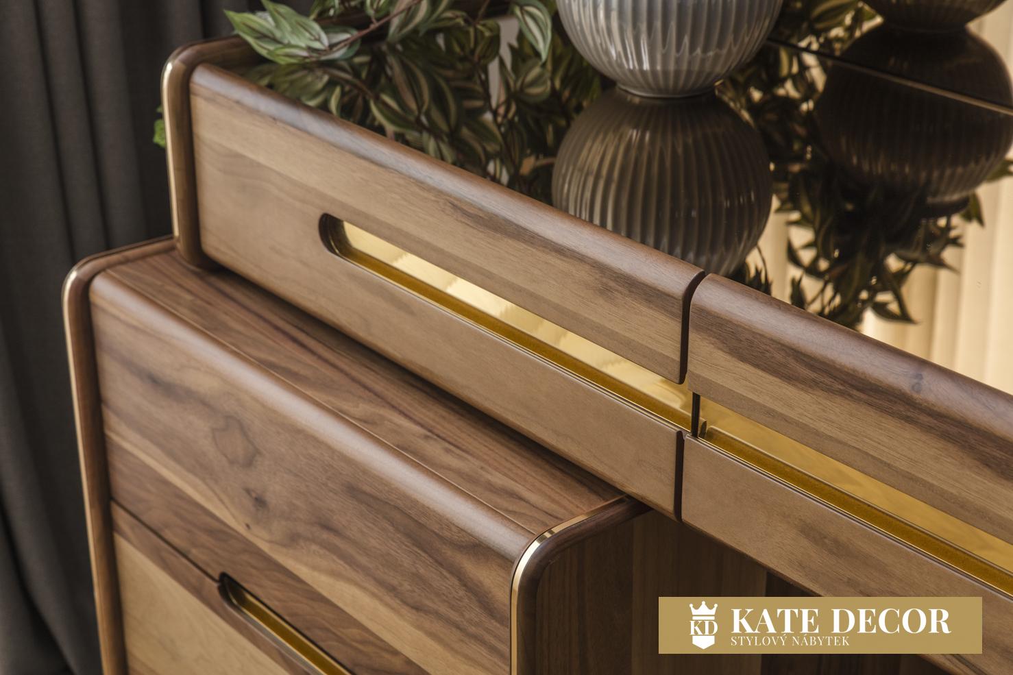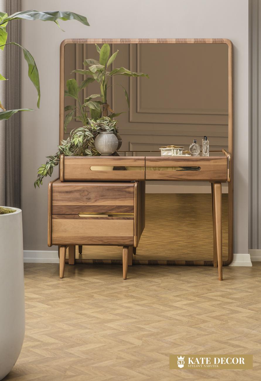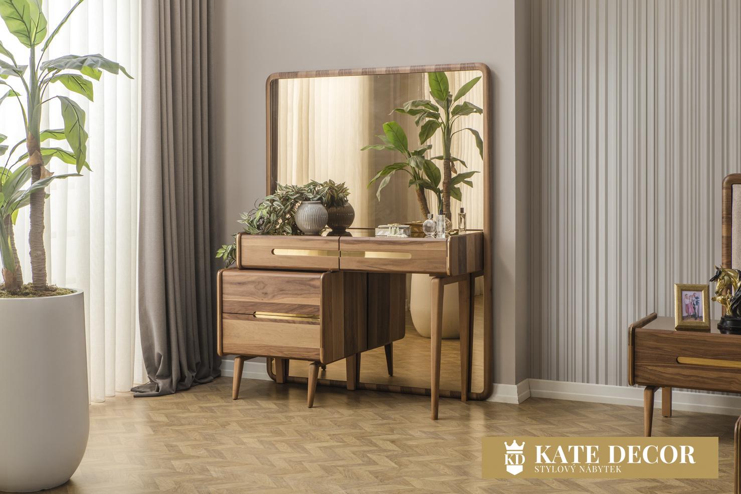 Milovníci dřeva znají velmi dobře jeho účinky na lidskou duši i mysl. Znají též pocity z jeho doteku i ušlechtilost přírodního vzoru. To vše je pomyslnou alfou a omegou sestavy nábytku ICON. Přírodní vzor, propracovaný dekor, příjemný povrch je navržen tak, aby splnil Vaše sny o teplém a útulném pokoji. Zaoblené hrany, zlaté detaily, přírodní odstín, kouřově zlaté zrcadlo i horní deska stolku jsou energetické prvky, které odvedou veškeré napětí z těžkého dne. Ložnicová sestava ICON Vám nabízí ideální příležitost pozvat přírodu do svého domova. Pokud upřednostníte barvu dřeva na nábytku, získáte tak skvělý způsob, jak do interiéru vnést pohodlí a teplo. Pocit života v klidu a maximálním pohodlí je nepopsatelný. Nabízíme Vám, abyste tento pocit pocítili v každém koutě vašeho domova. Ložnice je připravena stát se součástí Vašeho života díky designovým dveřím šatní skříně, úžasným dekorům a odstínům.