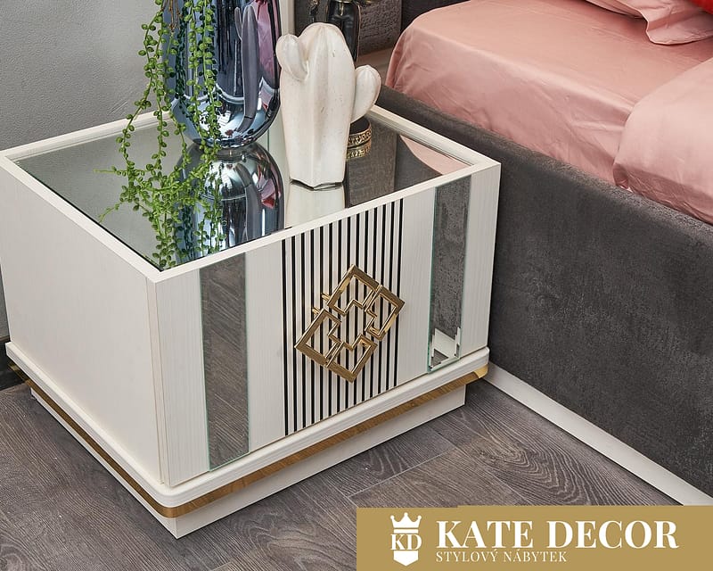 Kombinace šedé a bílé se stříbrnými tóny a zrcadlem vytvoří ve Vašem pokoji jinou atmosféru. Sestava dodá Vašemu pokoji eleganci svými zrcadlovými aplikacemi, kovovými úchytkami a moderním designem, navíc Vám usnadní život díky svým funkčním detailům. Použité jemné dřevotřískové desky odolné proti poškrábání, materiály a mechanismy dokazují kvalitu výrobku a zaručují jeho dlouhodobé používání. Ložnicová sestava MAYA se skládá z postele, stylové skříně, 2 nočních stolků a komody se zrcadlem.