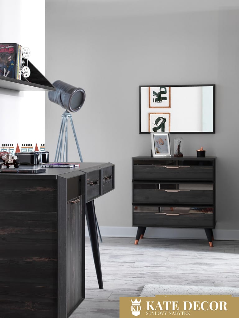 Představujeme Vám model, který má výjimečný vzhled, moderní styl a nenahraditelné pohodlí. Přítomnost všech těchto atributů formuje komodu VEGA a činí z ní jeden z nejpreferovanějších produktů. Barva, zrcadlové aplikace, kovové detaily a design čela postele zdůrazňují jeho exkluzivitu. Pokud je třeba pomůže Vám povzbudit soustředění k práci i učení a podněcuje energii i cílevědomost. Naše produkty jsou vyrobeny z nejkvalitnějších antialergických materiálů a tkanin s ohledem na zdraví Vašich hrdinů a mladých dam. Povzbuzuje tak kreativitu, utváří vkus a budoucí osobní styl.