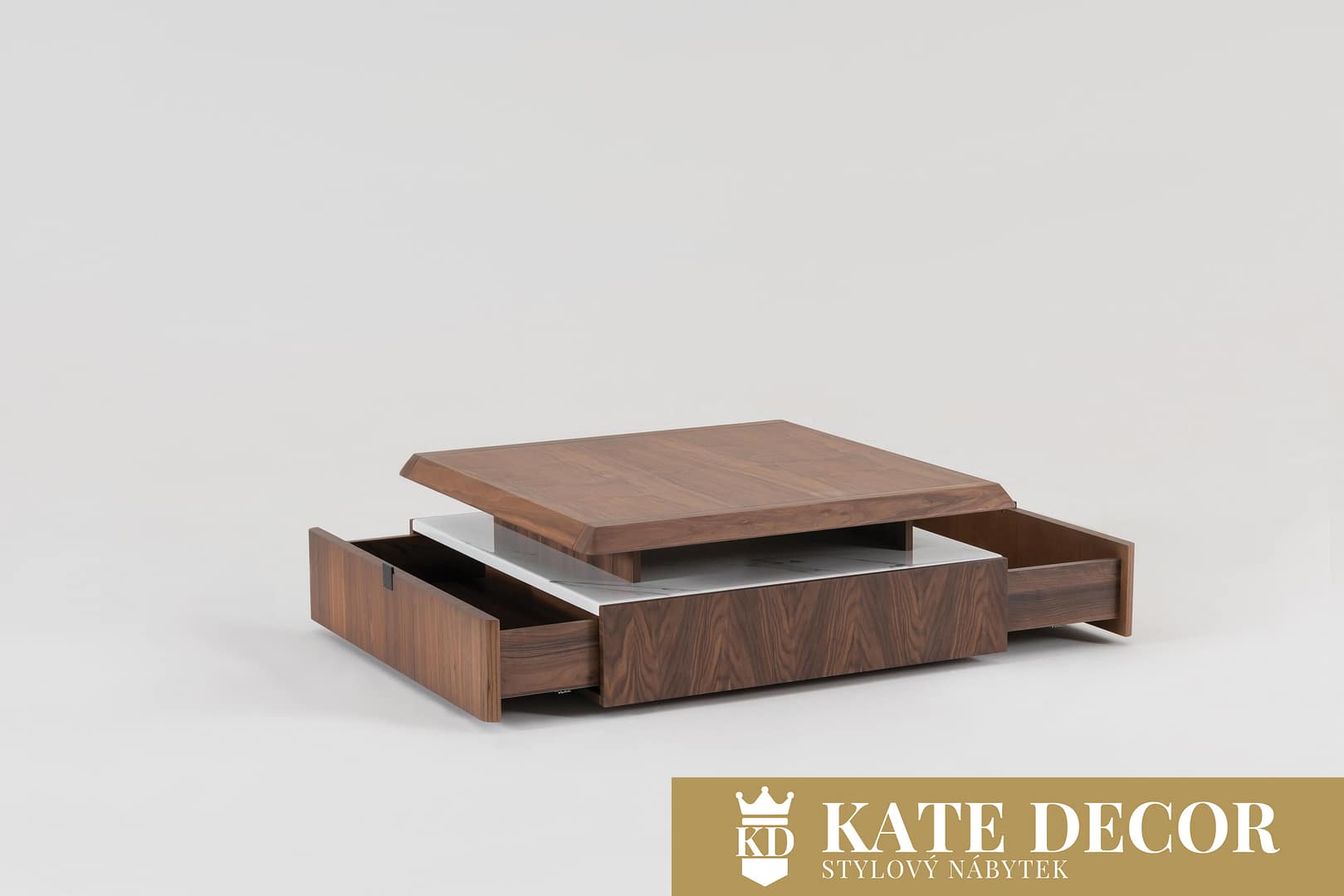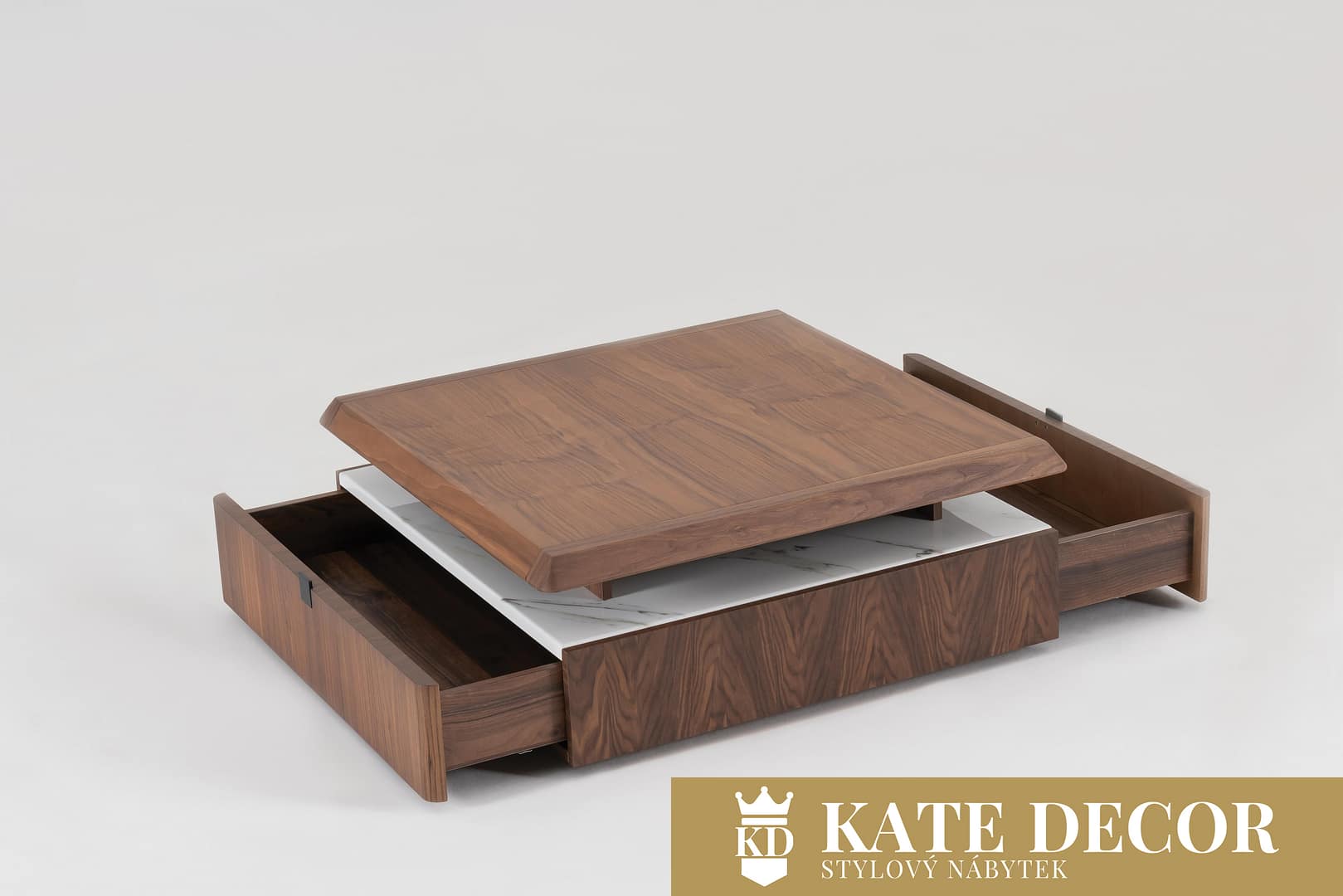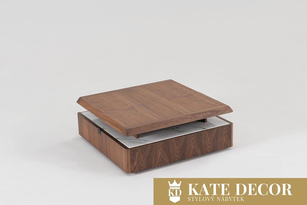 Konferenční stolek GENOVA v neobvyklém designu je připraven vnést do Vašeho domova styl, praktičnost a lehkost života. Odolná deska proti poškrábání umožňuje flexibilně zvětšit prostor při servírování pohoštění a stejně tak skrýt drobné předměty během všedních dnů. Na dotyk příjemná horní deska kontrastuje se spodní v dekoru šedého mramoru a zaoblené hrany jsou bezpečné pro pohyb v místnosti.