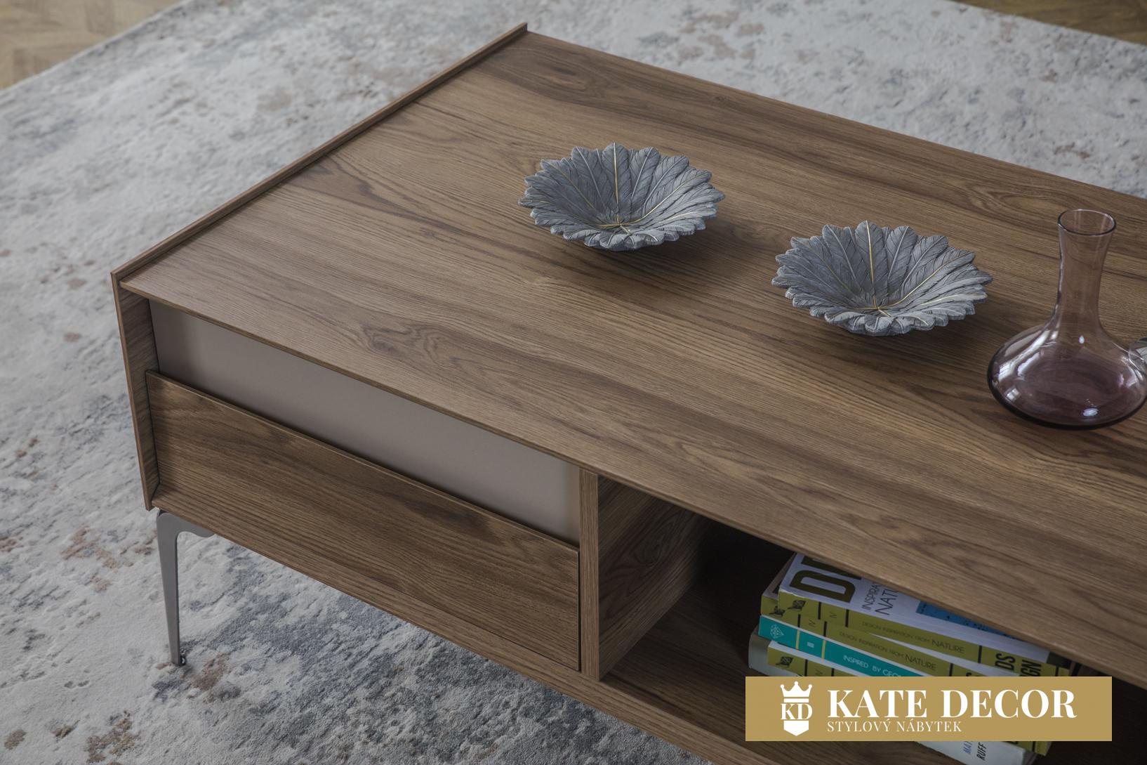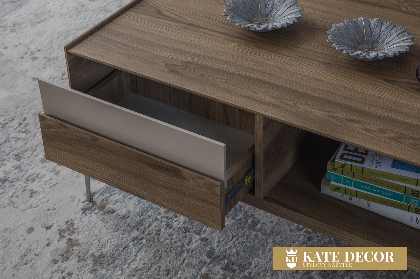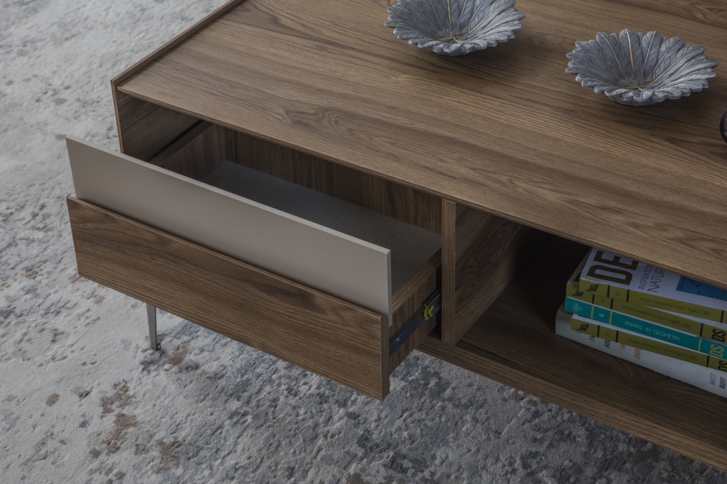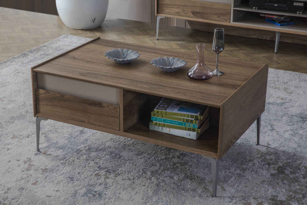 Konferenční stolek MIRA chce být součástí Vašeho domova, neboť působí uklidňujícím dojmem. Je navržen s velkou precizností, aby Vám poskytl styl, pohodlí a praktičnost. Dokáže skrýt drobné předměty během všedních dnů. Povrch je příjemný na dotyk a odolný proti poškrábání. Kovové nohy ve stříbrném matu s lehkostí podpírají celý stolek.