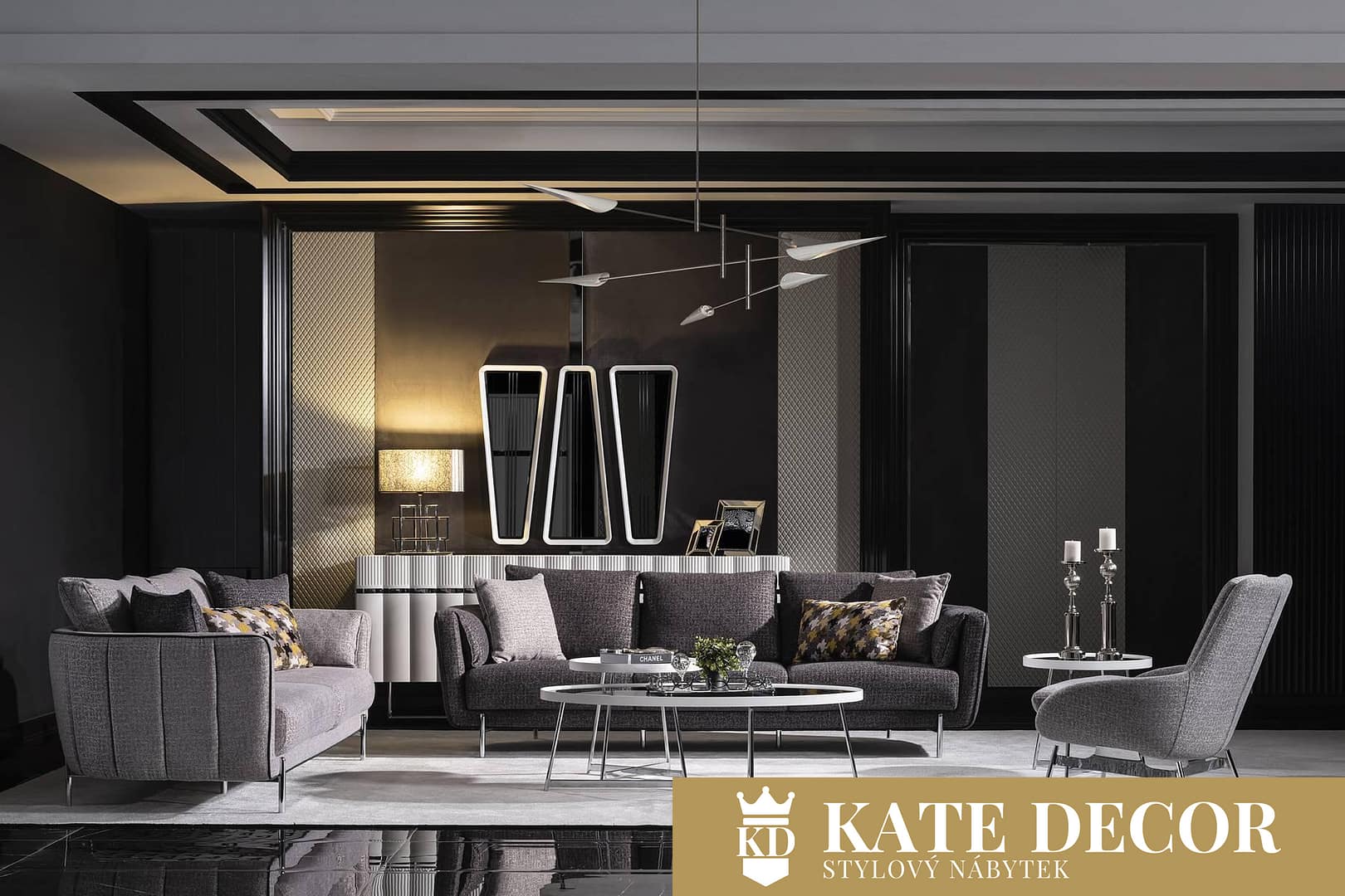 Obývací sestava AQUA Vás chce svými designovými detaily seznámit s moderností a pohodlím. Díky němu zažijete pocity, s nimiž jste se dosud nesetkali. Tato sada zvýrazní Váš vkus, styl a úroveň. Materiály MDF, měkké zdobené čalounění, antracitové detaily a moderní technologie použité při výrobě ukazují jedinečnost a udržitelnost výrobků.