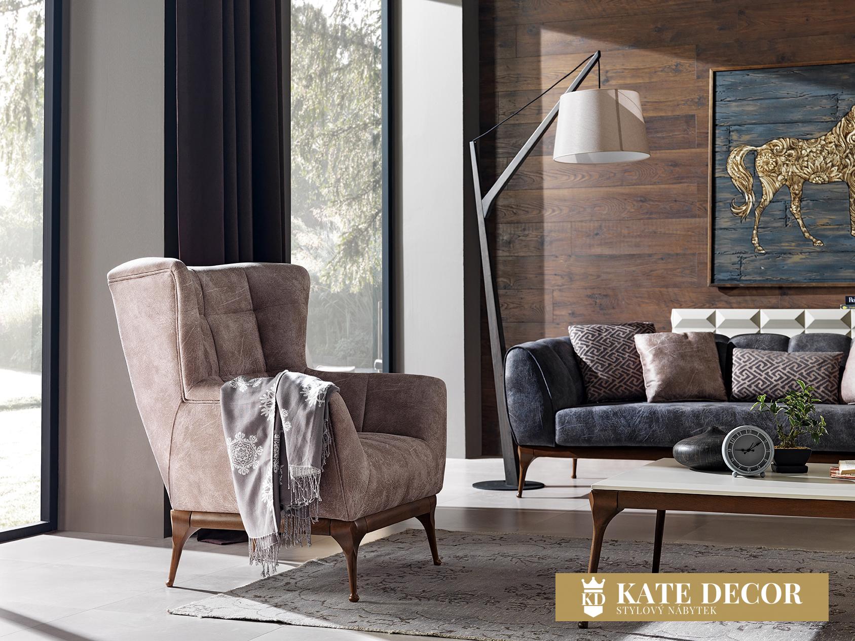Společnost KATEDECOR s potěšením představuje novou speciálně navrženou obývací sestavu DIANA. Díky svému jedinečnému designu je připraven dodat Vašemu pokoji vizi a šarm. Estetické dřevěné nohy, látka s čepičkou a jedinečná barevná harmonie dotvářejí vzhled soupravy a činí z ní jeden z našich nejoblíbenějších produktů. Kromě stylu vyniká tato sedací souprava také jedinečným komfortem a útulností, které zajišťuje použití měkké houby prvotřídní kvality 35 HR (hustota) při její výrobě.