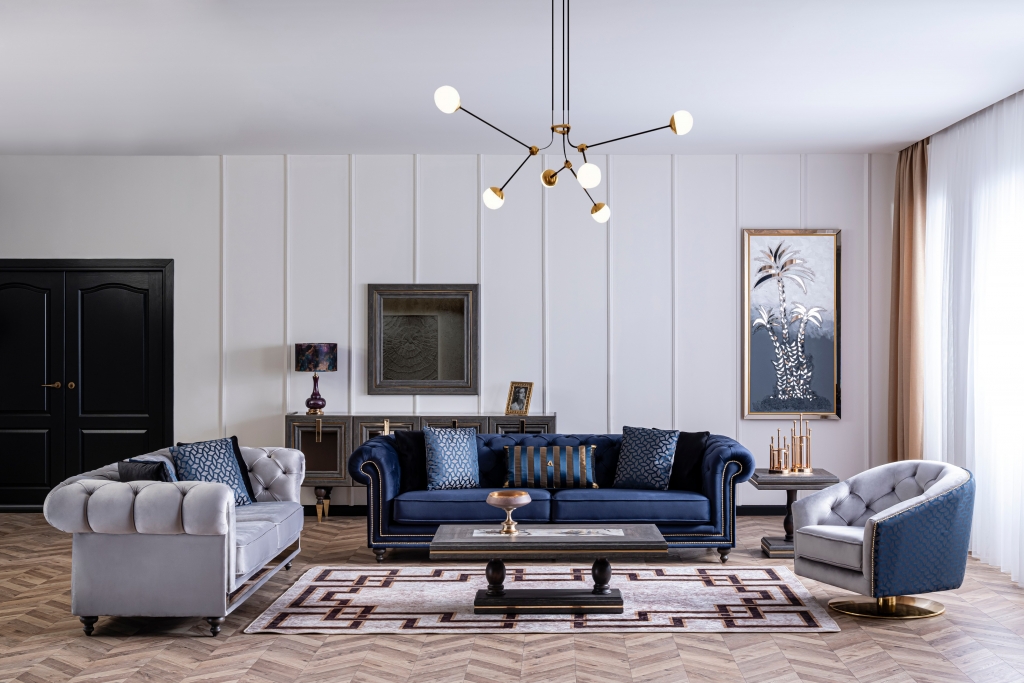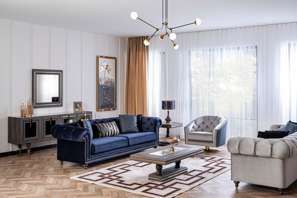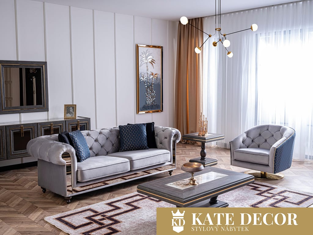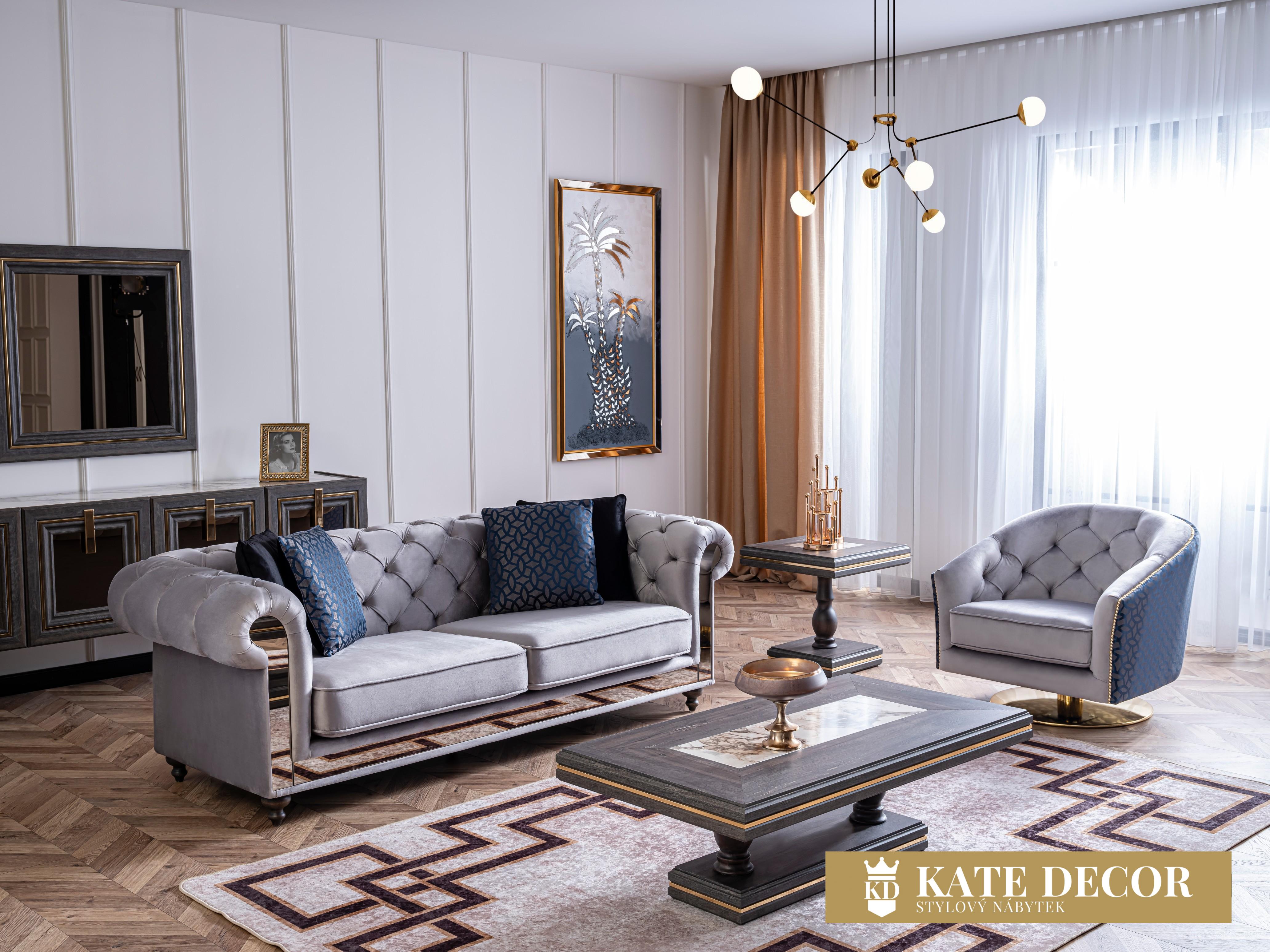 Obývací sestava MADRID je jedinečný design, který kombinuje klasiku s modernou. Tato jedinečná kombinace vytvoří ve Vašem pokoji stylovou atmosféru. Jemná harmonie detailů staví soubor do popředí. Čepicové dekory, zlaté tóny zdůrazňují exkluzivitu křesel a materiály MDF a mechanismy jejich trvanlivost. U čalounění se dává přednost měkké strukturované dovážené tkanině, díky níž se zvyšuje odolnost proti skvrnám a výrobky lze používat mnoho let bez deformace.