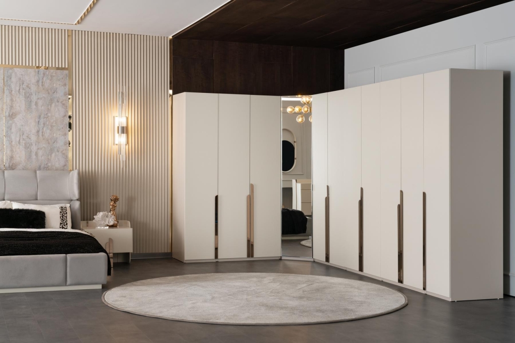 Umění je především o osobním vkusu, touze a vyjádření. Abyste mohli zažít klid, musí být vše ve Vaší domácnosti propojeno v dokonalé harmonii, a to je možné pouze s ložnicí BEYONCE. Nabízí Vám nepřekonatelné pohodlí i svůdný vzhled díky svému stylu. Sada Vám umožní relaxovat a užívat si útulnosti, protože cítíte čistotu a lehkost její bílé barvy. Materiály, mechanismy, výplň a látky použité při výrobě ložnicové soupravy jsou prvotřídní, což zaručuje její používání po mnoho let. Velmi milá a komfortní bílošedá barva ložnicové sestavy BEYONCE VIZION vnáší do Vašeho pokoje lehkost, stabilitu a vyrovnanost energie. Exkluzivitu zvyšuje kontrast mezi matem příjemné textilie a vysokým leskem nábytku. Stojací zrcadlo i atypičnost patinovaného kovu nohou dělá dojem antigravitační lehkosti v prostoru. Zajímavým prvkem je použití stejného motivu úchytek šatní skříně pro nohy nočního stolku. Celkový příjemný dojem navozuje střídmost linií, kombinace obou barev a decentní, ale přesto rafinované originální zdobení.