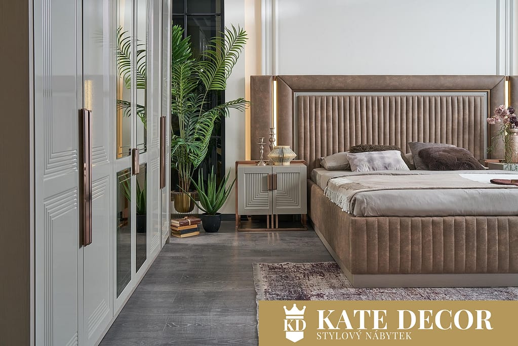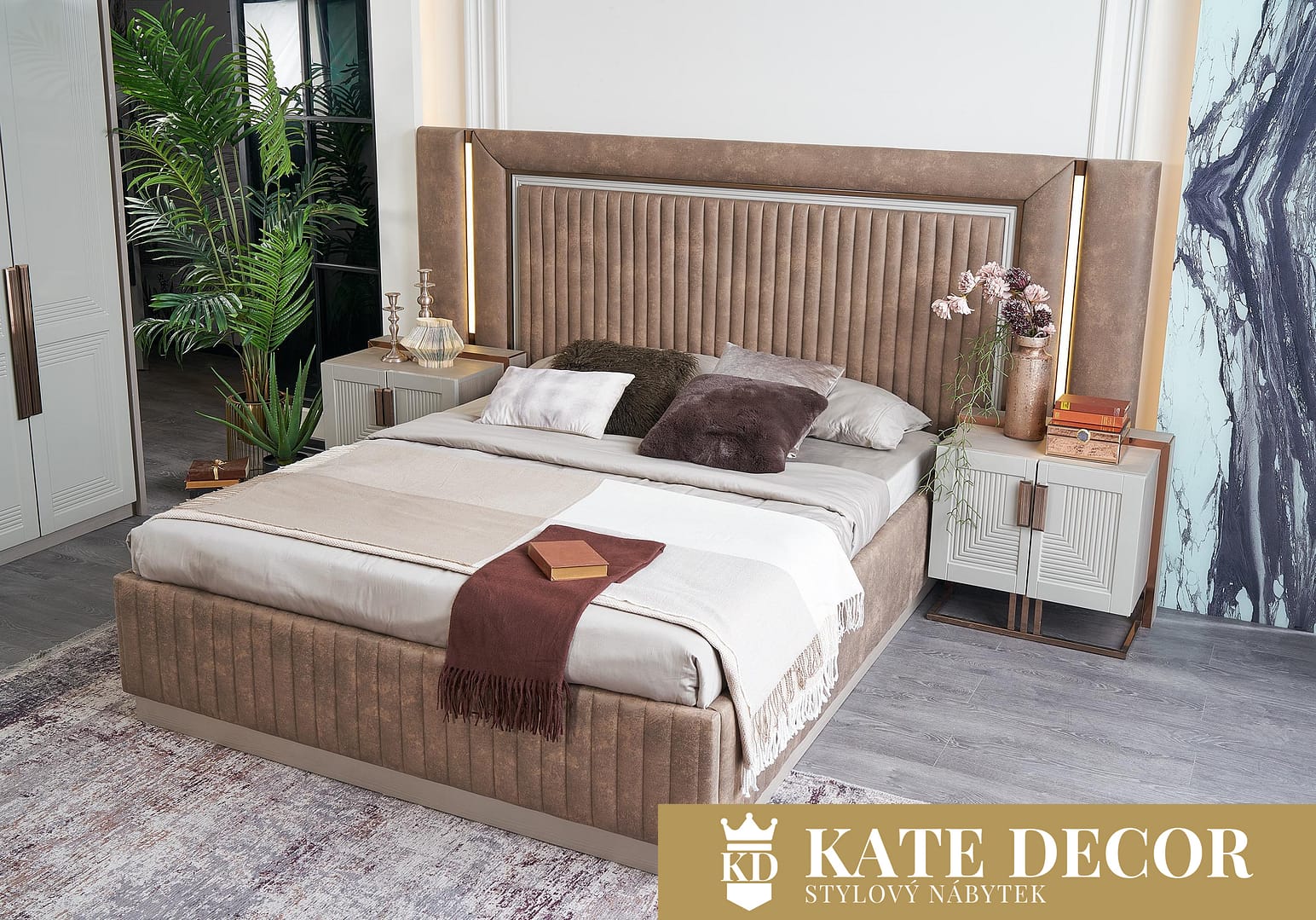 postel: šířka 279 cm, výška 153 cm, hloubka 215 cm.