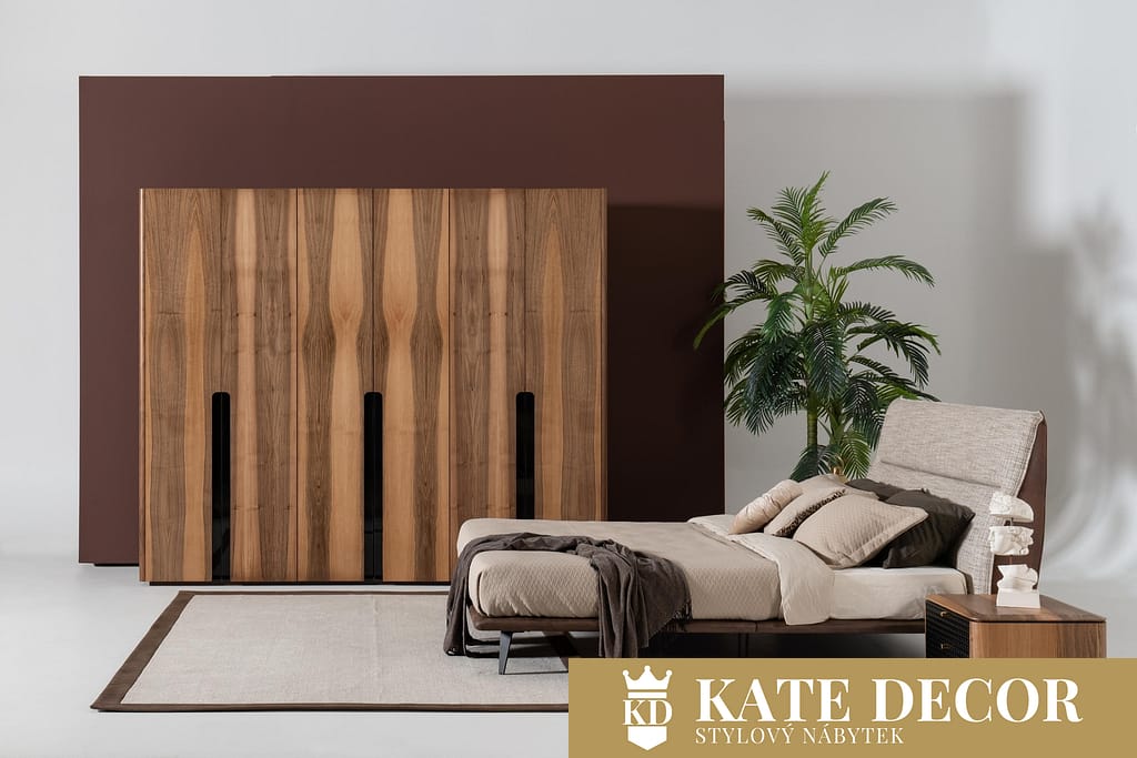 Dodejte svému domovu jedinečnost s ložnicovou soupravou JULIA, která dodá prostorům sebevědomou a sofistikovanou atmosféru a svým designem přitahuje pozornost. Pokud jde o estetiku a pohodlí, Vaše sny jsou neomezené. Výsledkem je elegantní estetika a funkčnost ložnicové sestavy JULIA. Dřevo s přírodním motivem působí blahodárně na lidskou mysl i duši. Tmavší odstín dřeva s motivem letokruhů vůči přírodnímu světlému odstínu potahu lůžka vyvolává maximální duševní uvolnění. Sestava JULIA tak přivádí přírodu přímo do Vaší ložnice. Lehkost, vzdušnost, minimalismus a modernost jsou jejími atributy.