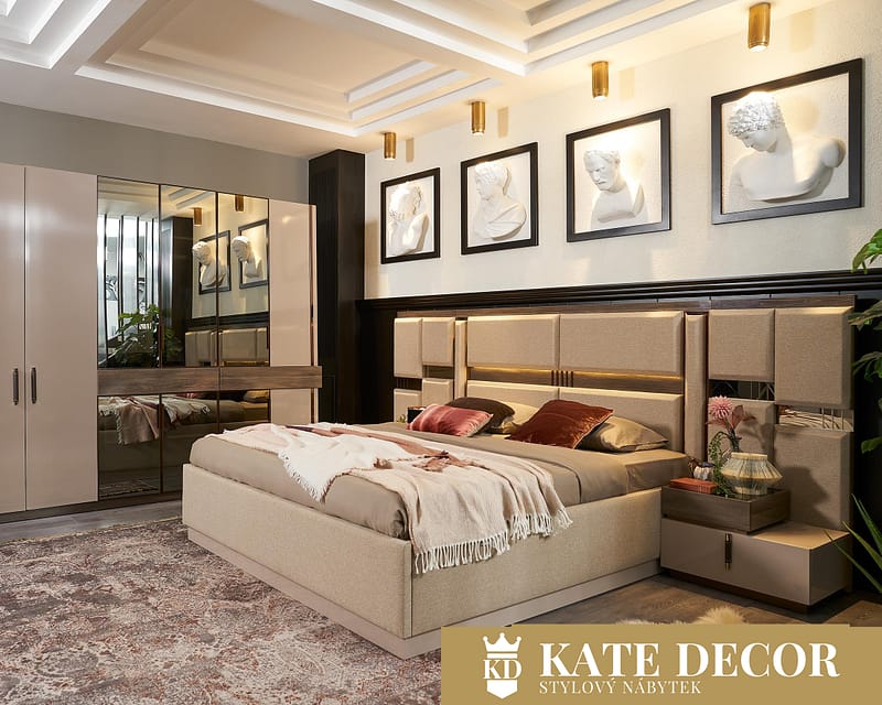Dodejte svému domovu jedinečnost s ložnicovou soupravou JULIA, která dodá prostorům sebevědomou a sofistikovanou atmosféru a svým designem přitahuje pozornost. Pokud jde o estetiku a pohodlí, Vaše sny jsou neomezené. Výsledkem je elegantní estetika a funkčnost ložnicové sestavy JULIA. Dřevo s přírodním motivem působí blahodárně na lidskou mysl i duši. Tmavší odstín dřeva s motivem letokruhů vůči přírodnímu světlému odstínu potahu lůžka vyvolává maximální duševní uvolnění. Sestava JULIA tak přivádí přírodu přímo do Vaší ložnice. Lehkost, vzdušnost, minimalismus a modernost jsou jejími atributy.
