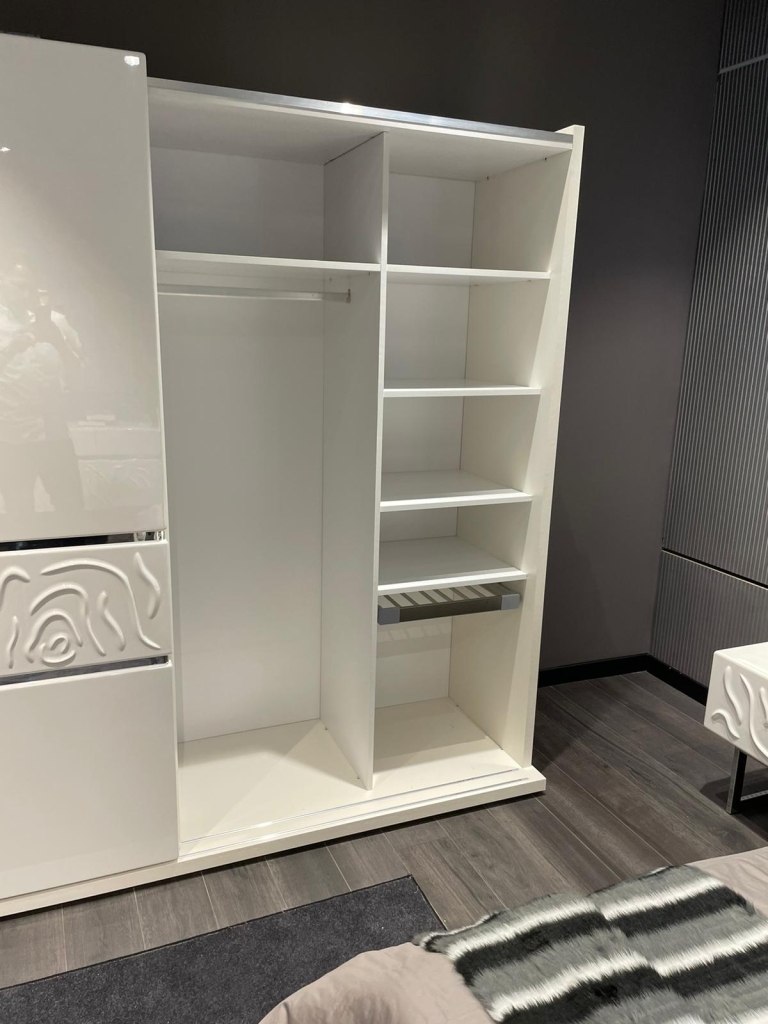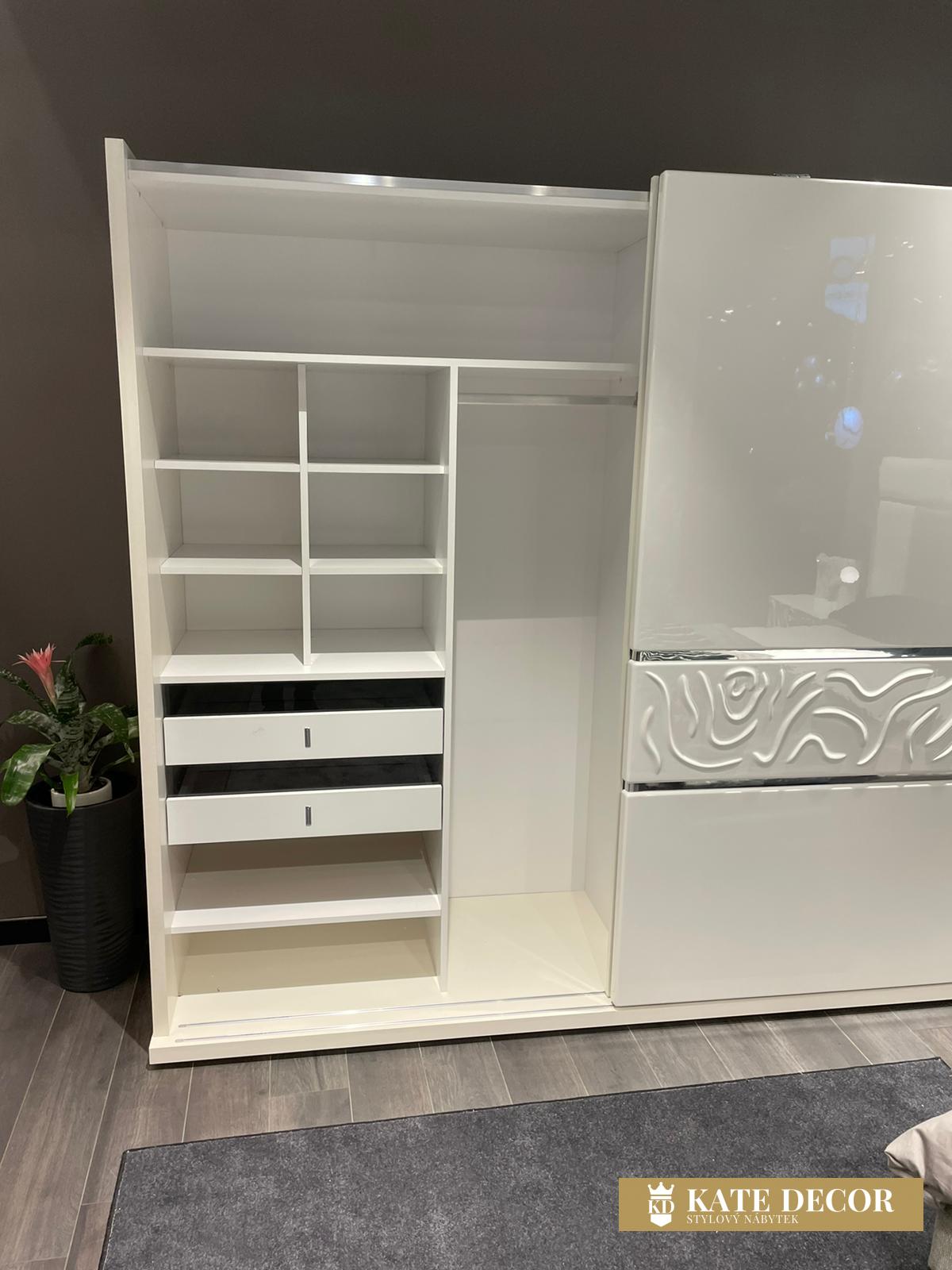– šatní skříň se skrytými zásuvkami, závěsnými částmi a několika policemi;