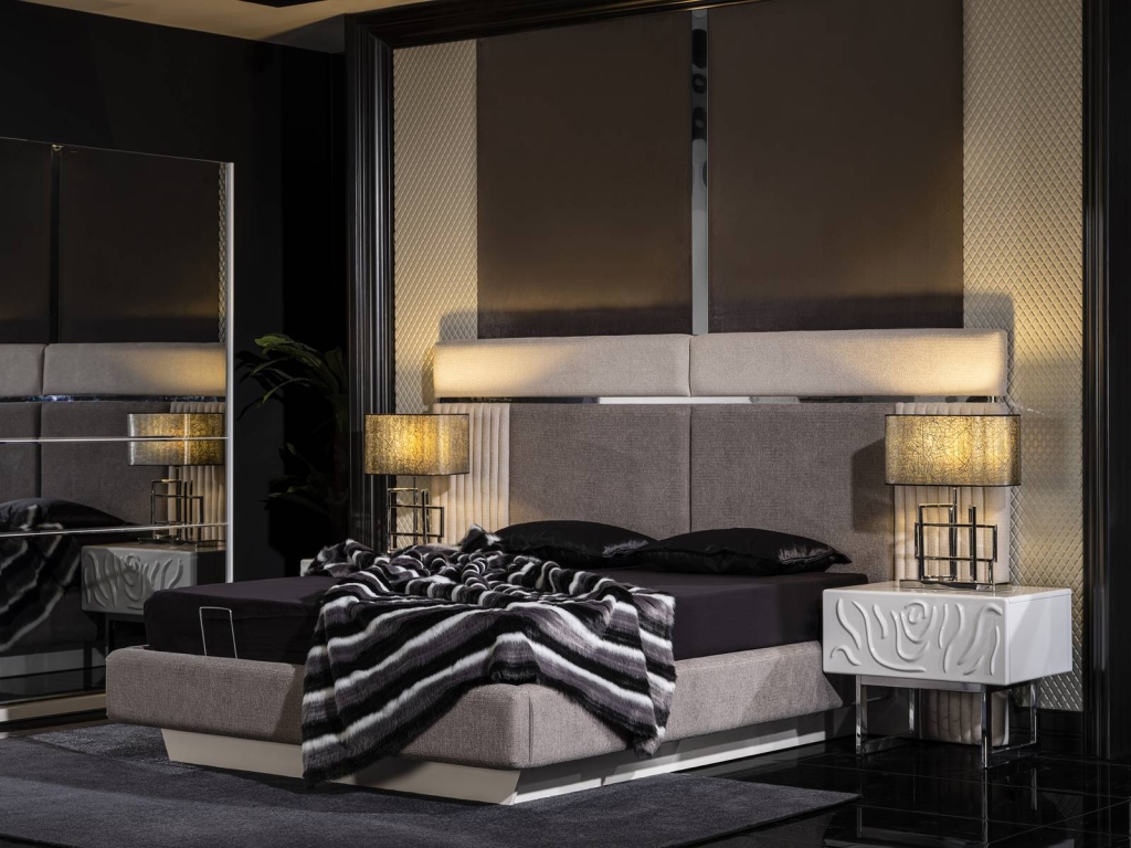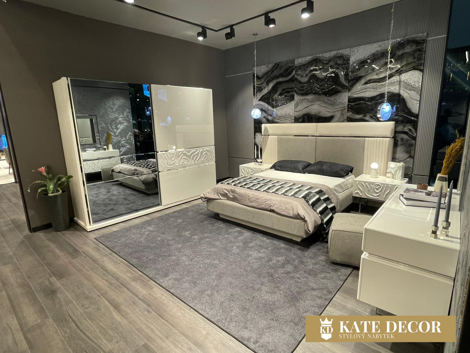 Ložnicová sestava PARMA je výrazem kombinace moderního přístupu k dekoraci s poutavými designovými prvky. Výrobek ukazuje, jak se ženská designová linie snoubí s romantikou. Pokud o životě přemýšlíme jako o designu, je pro nás nejlepší a nejkrásnější design produktem Vašich snů. Ložnice je určena pro ty, kteří dávají přednost jemným barvám a chtějí do svého domova vnést svěžest a světlo.