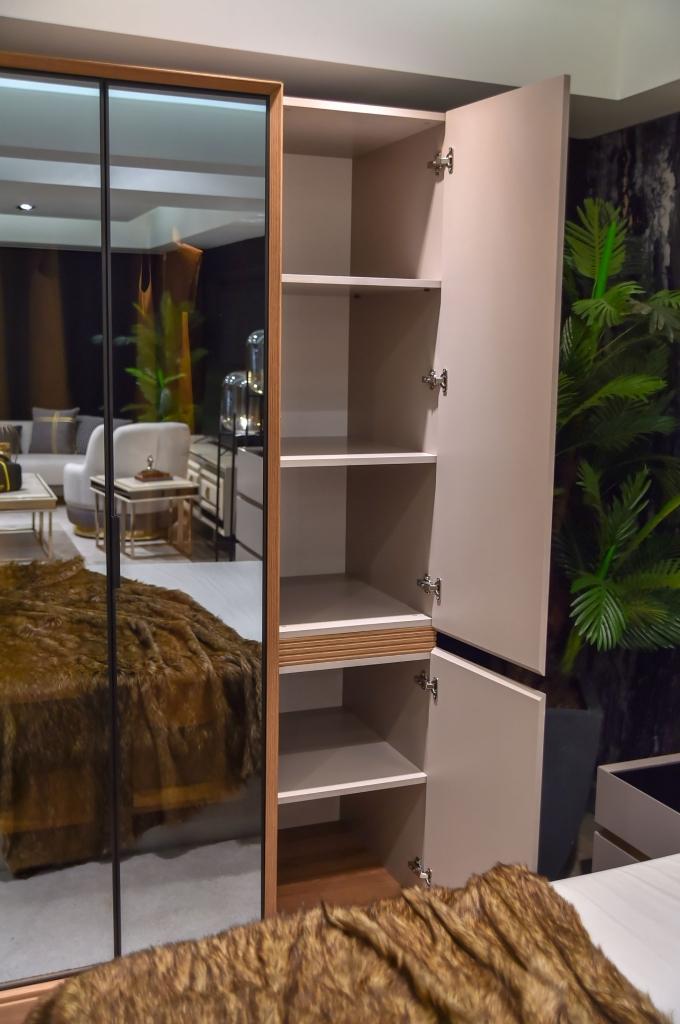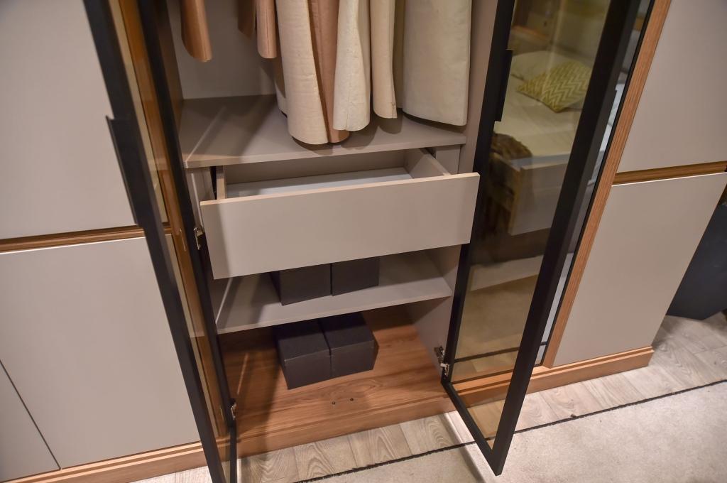 – šatní skříň se skrytými zásuvkami, závěsnými částmi a několika policemi;