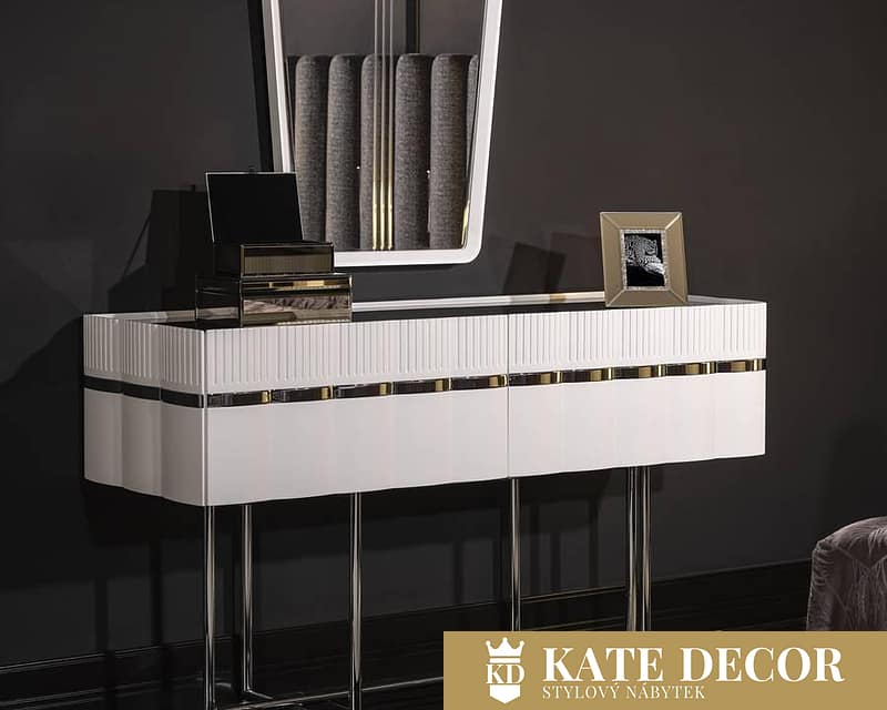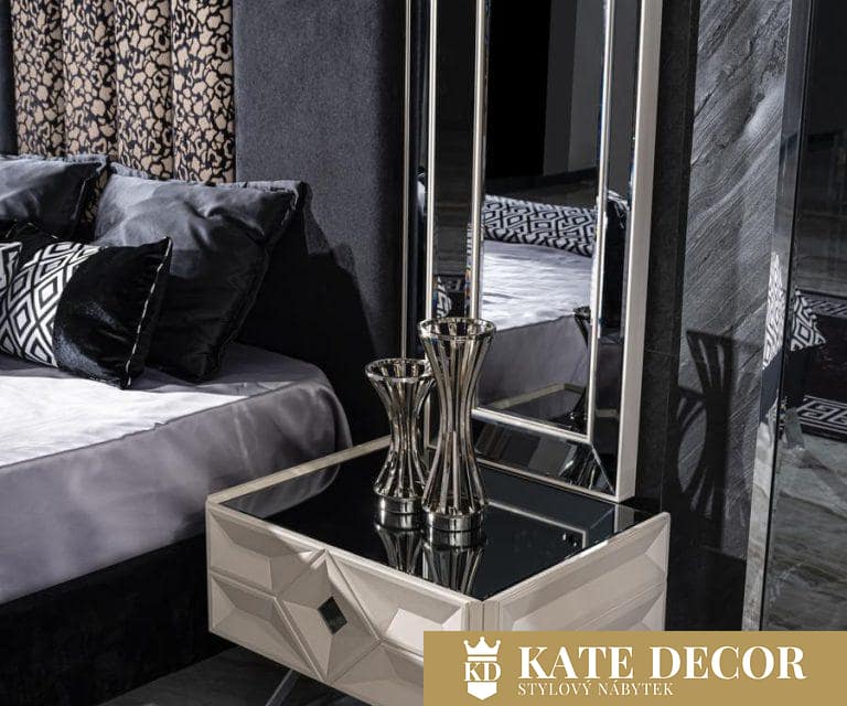 Noční stolek AQUA Vám svými designovými detaily chce představit modernost a pohodlí. S ním zažijete pocity, které jste nikdy nepotkali. Sada nábytku AQUA posune Váš vkus a styl do popředí. MDF materiály, antracitové detaily, ale i moderní technologie použité při výrobě ukazují jedinečnost a udržitelnost produktů. Noční stolek AQUA přináší tradiční trojkombinaci černé, bílé a stříbrné. Horní deska z černého skla je odolná proti poškrábání, čelo s dominantním plastickým dekorem řasení je projevem vnitřní síly, stříbrný kov pozvedá celou kompozici na vyšší úroveň.