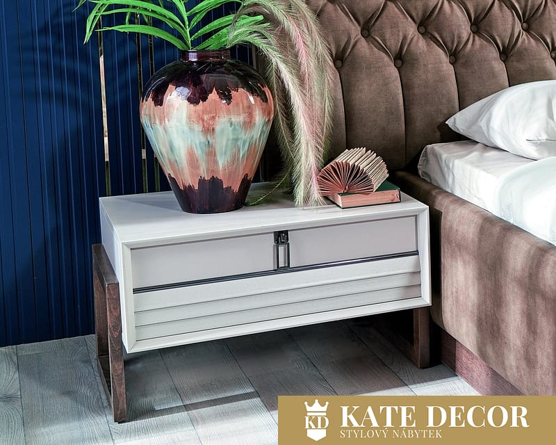 Noční stolek JUPITER dodá Vašemu domovu jedinečnost prémiové třídy a vybraného vkusu. Detaily, tónování i designové akcenty zlata zdůrazňují ladnost snoubící se s velkolepostí. Zlatý kov přechází v zajímavou stylizaci nohou. Kvalita materiálů a spojení vytváří stylový a luxusní dojem.