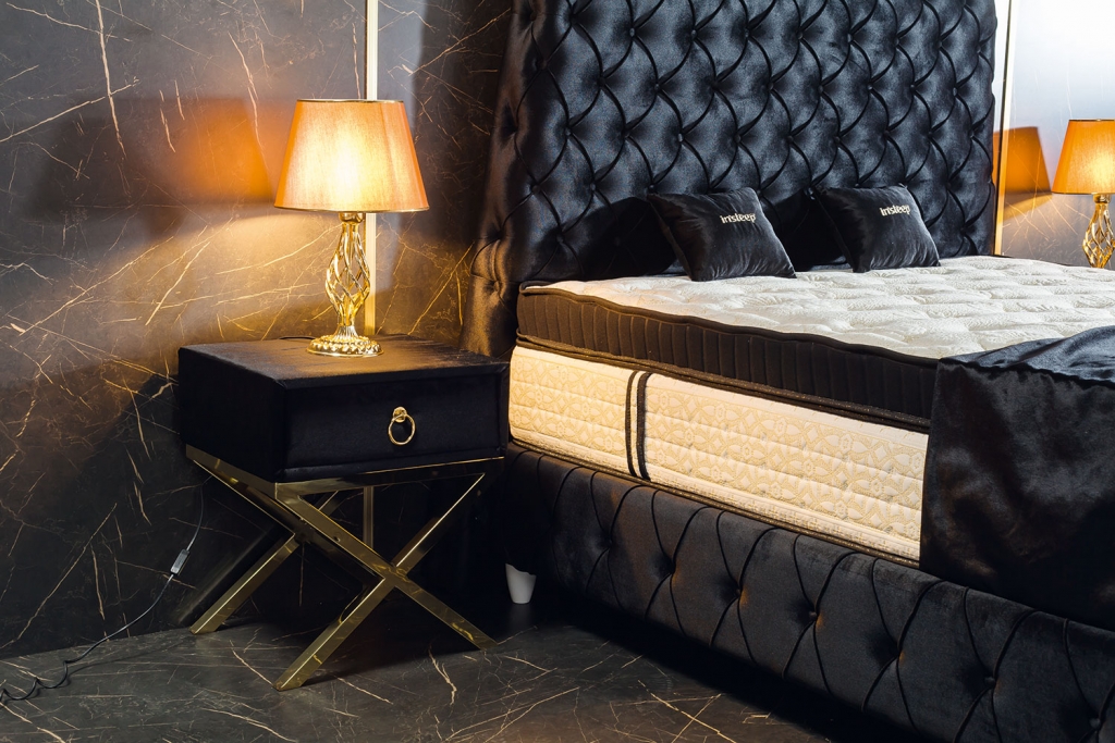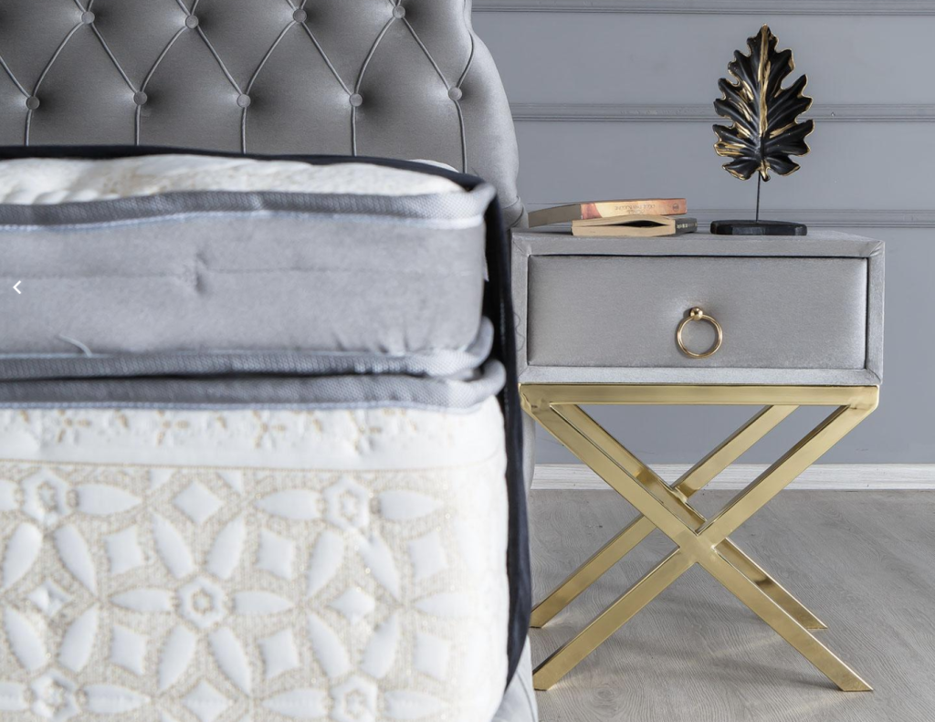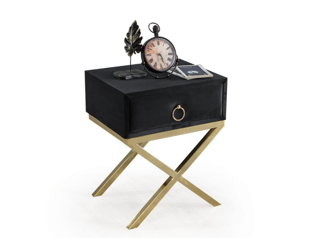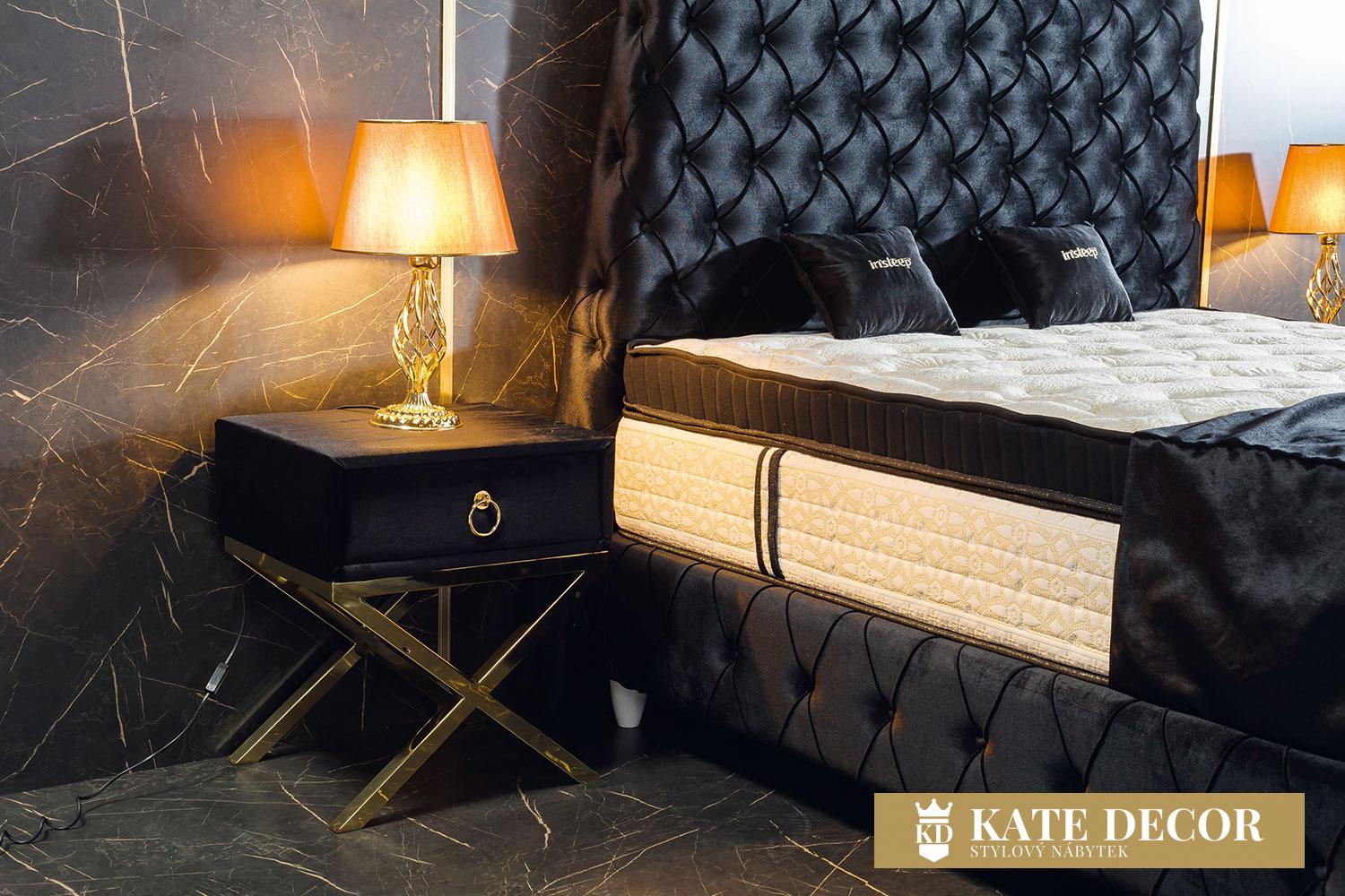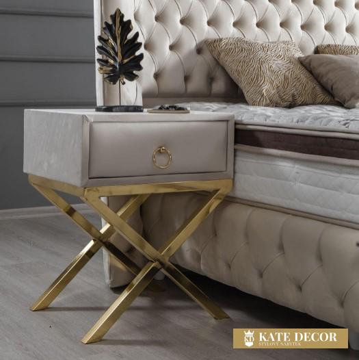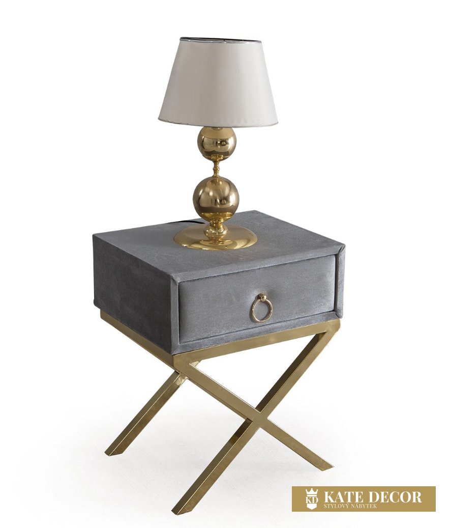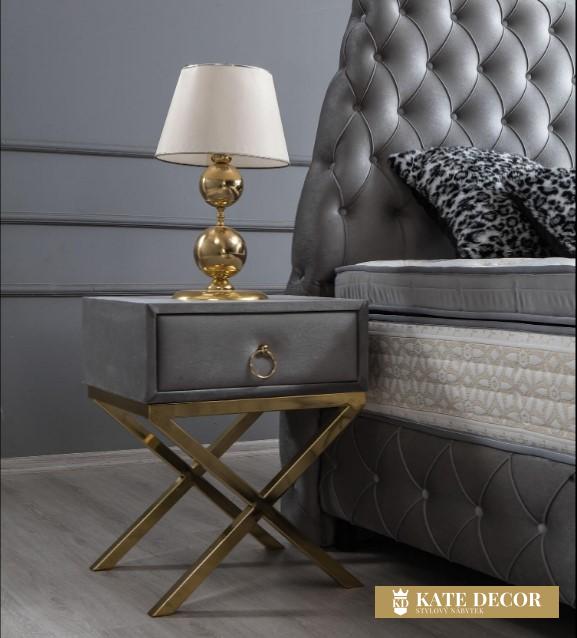 Noční stolek JUPITER dodá Vašemu domovu jedinečnost prémiové třídy a vybraného vkusu. Detaily, tónování i designové akcenty zlata zdůrazňují ladnost snoubící se s velkolepostí. Zlatý kov přechází v zajímavou stylizaci nohou. Kvalita materiálů a spojení vytváří stylový a luxusní dojem.