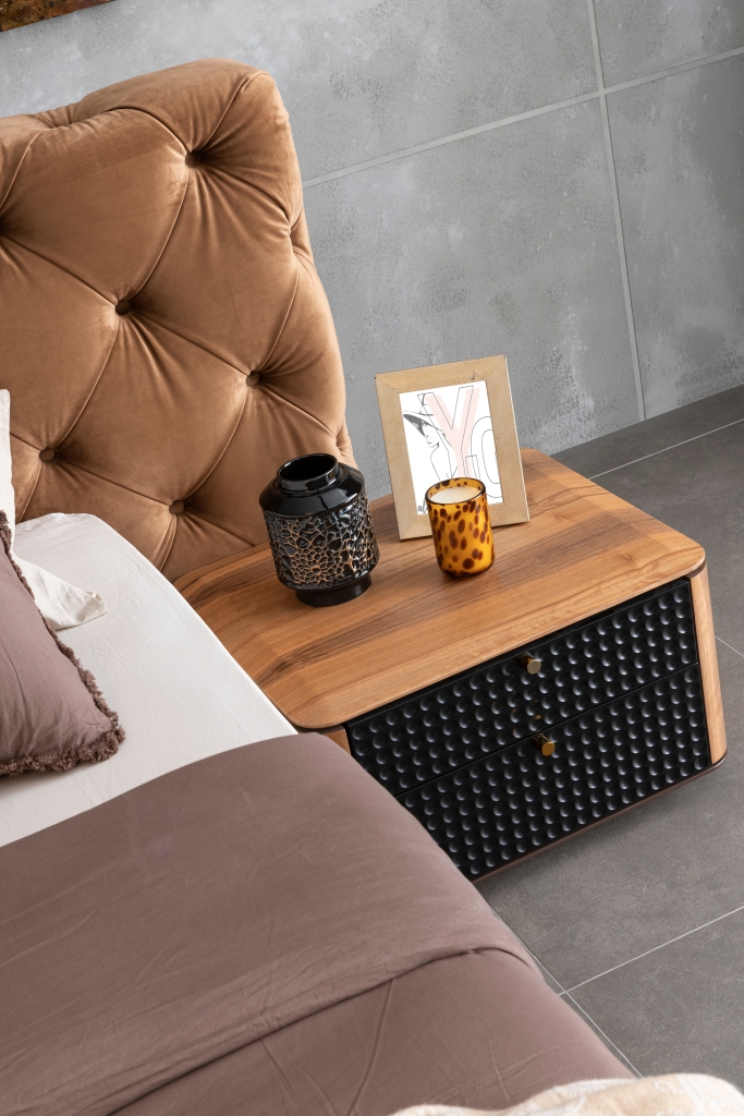Se svým vlastním tvarem a stylem vyniká ložnicová sestava LAYLA jako výrazný detail v moderní dekoraci. Od ostatních ložnic vyčnívá svým moderním stylem. Je to design, který spojuje estetiku a odolnost a integruje se s Vaší jedinečnou osobností s efekty trendových linií a ironických tvarů.