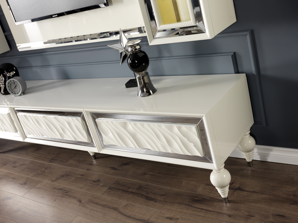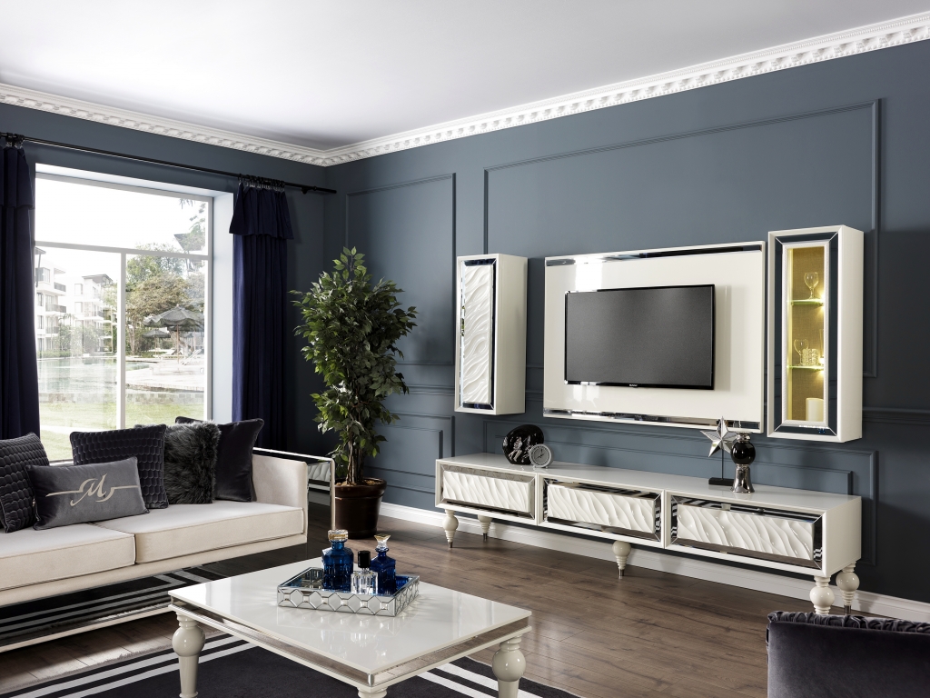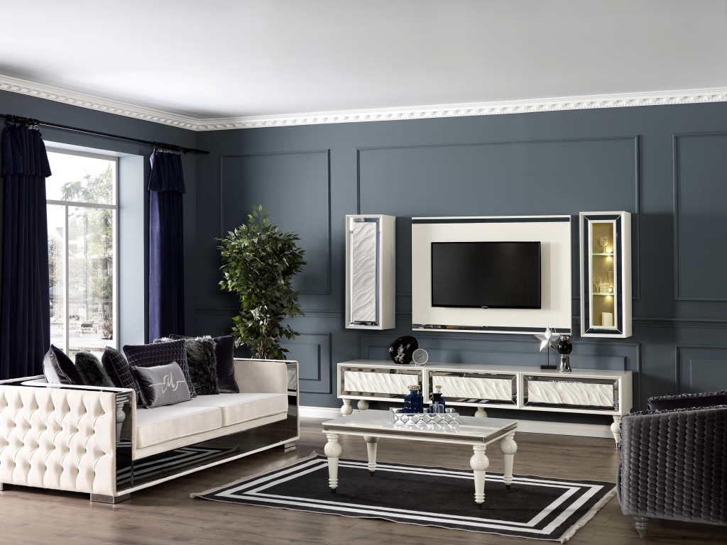 Obývací stěna DARZEN je jedním z nejkrásnějších příkladů ruční práce, která navždy zůstane ve vzpomínkách Vašich hostů i Vás samotných. Je vyroben z jemně lakované dřevotřískové desky prvotřídní kvality, odolné proti poškrábání. Volba televizní sekce DARZEN vnese do Vašeho domova půvab a šarm.