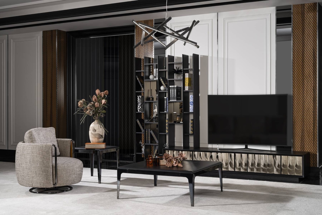 Obývací stěna LUCCA, která díky svým jedinečným designovým detailům odhaluje modernost a sofistikovanost, je připravena vytvořit atraktivní místnost díky stylovým kombinacím detailů. Je vyjádřením letošních módních a dekoračních trendů. Díky němu si můžete splnit své sny o moderním a stylovém pokoji. Sekce obohacená o jemné prvky, zrcadlové aplikace a pohodlí Vám dává možnost vytvořit relaxační a vyrovnané obytné prostory.