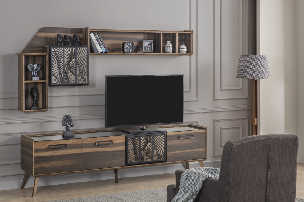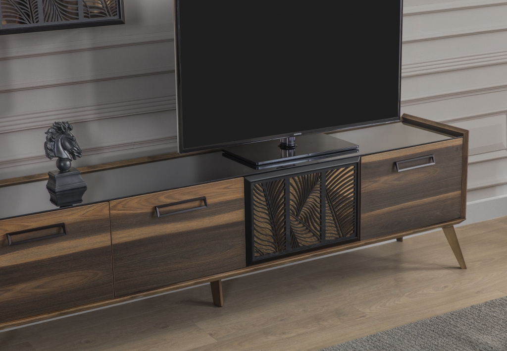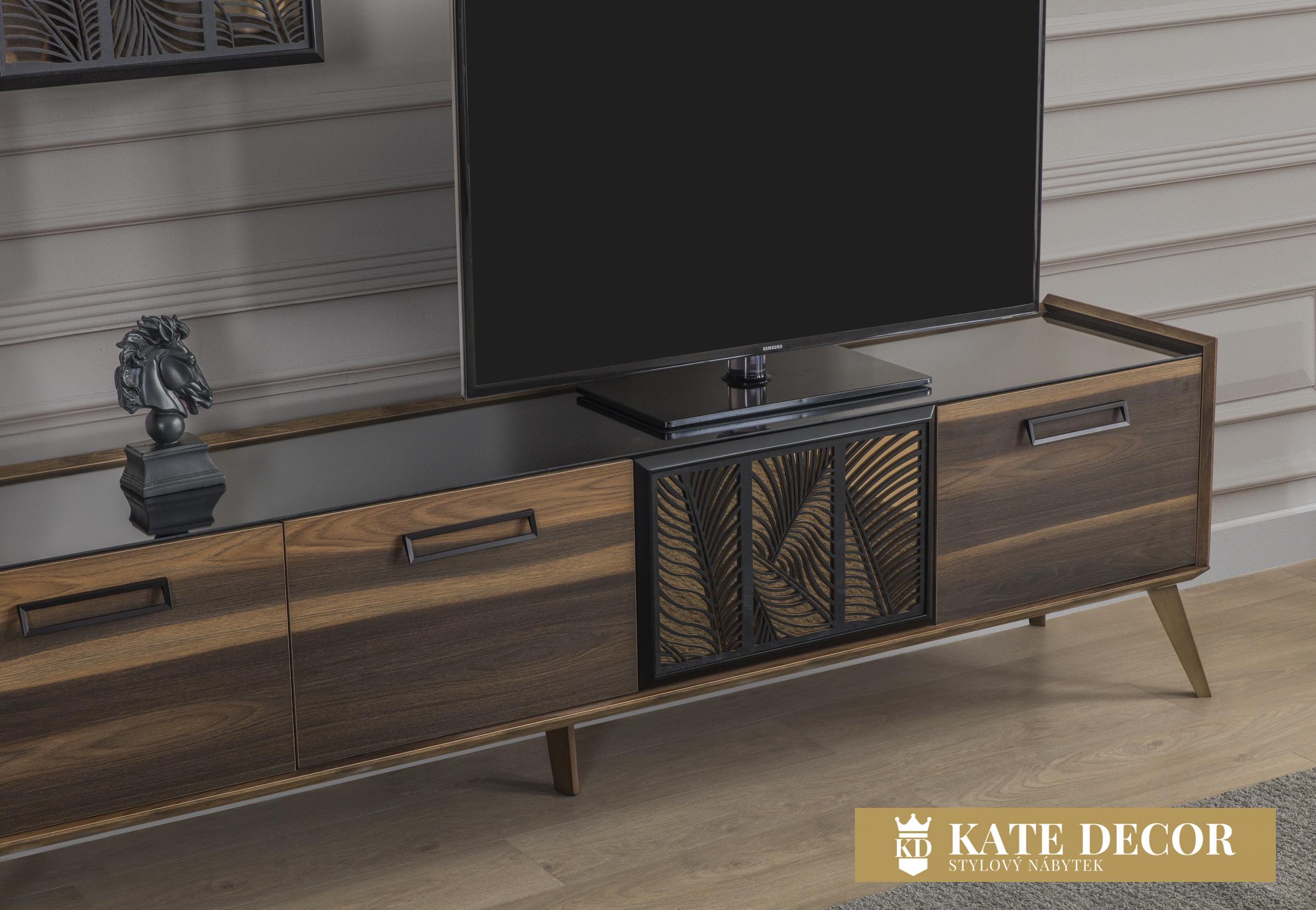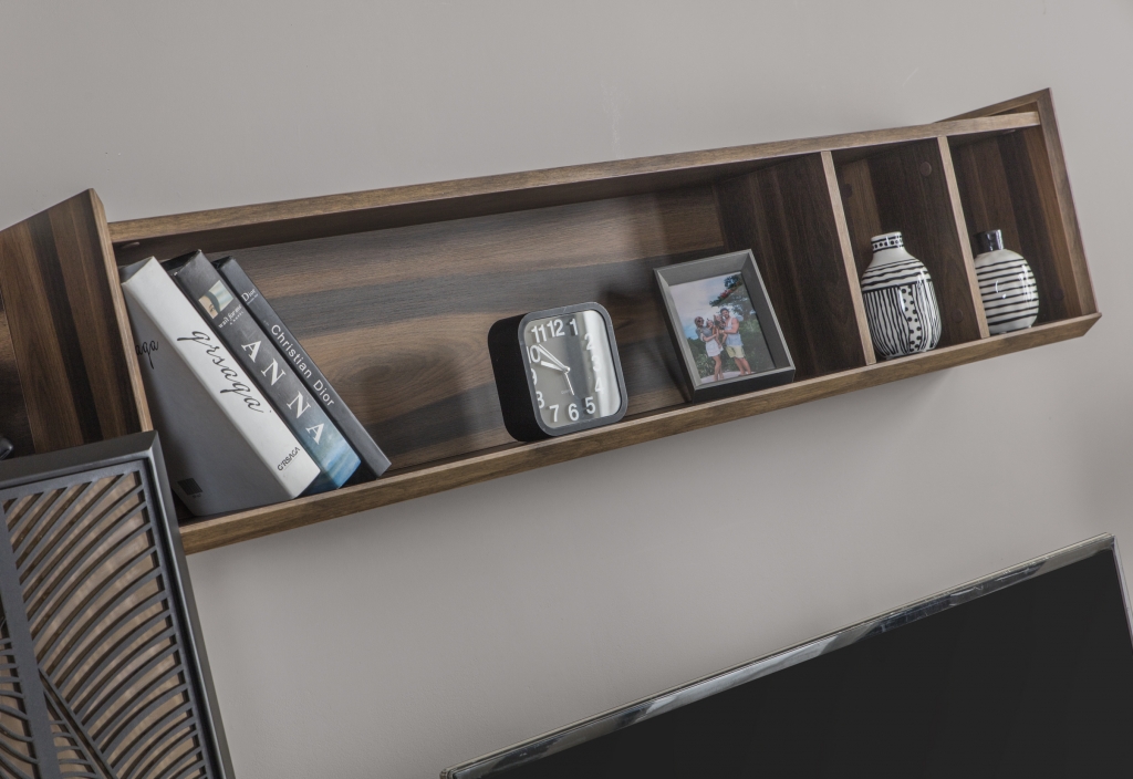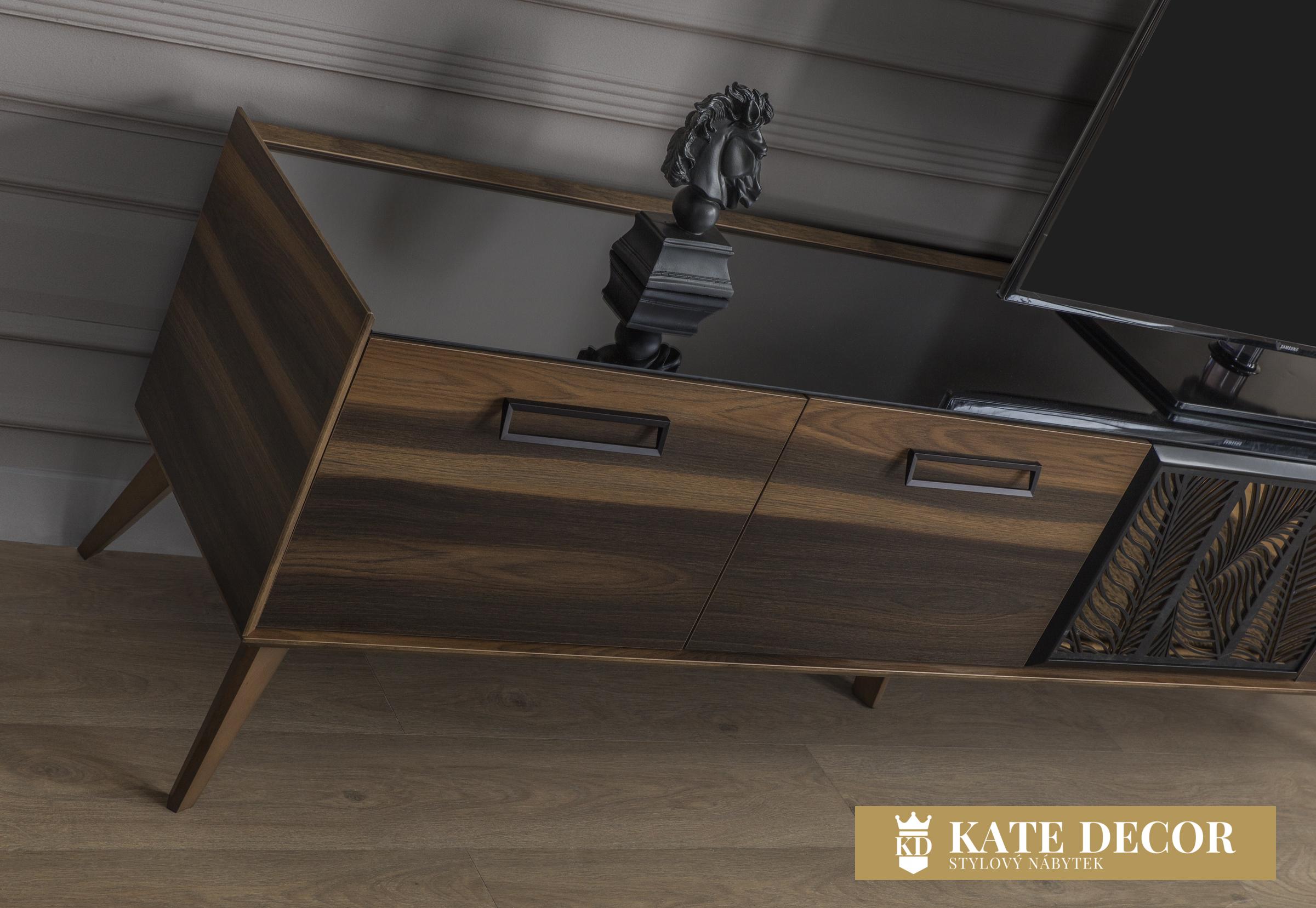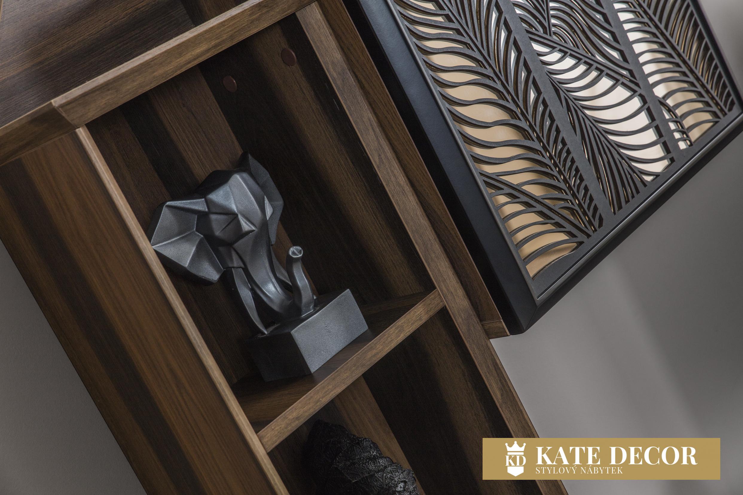 Model, který už jen svým vzhledem prozrazuje ruční práci. Detaily, nuance a všechny vlastnosti jsou důkazem této vytříbenosti. Použití laserových dekorů na zrcadlech a skříňkách, skleněná deska a barevná harmonie zdobí soupravu a činí ji středem pozornosti. Povrchy cedrových dřevotřískových desek jsou opracovány pod úhlem 45 stupňů, což svědčí o jejich třídě, odolnosti a rafinovanosti. Sekce nejenže dodá Vašemu pokoji styl, ale také poskytne dostatek úložného prostoru.