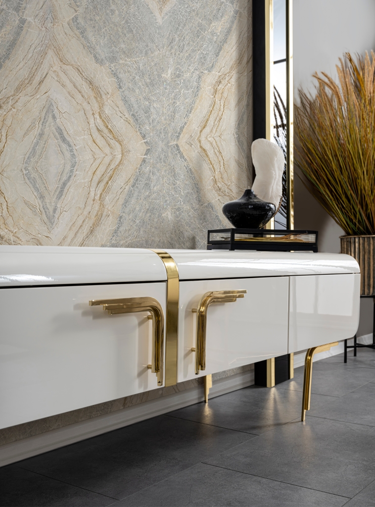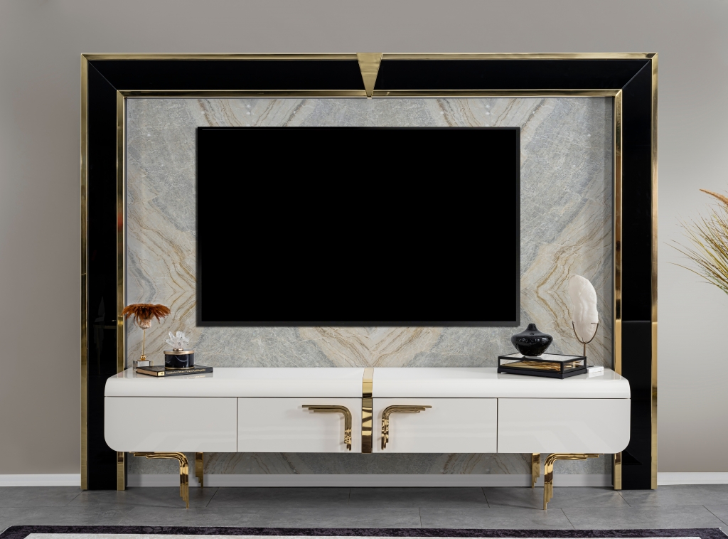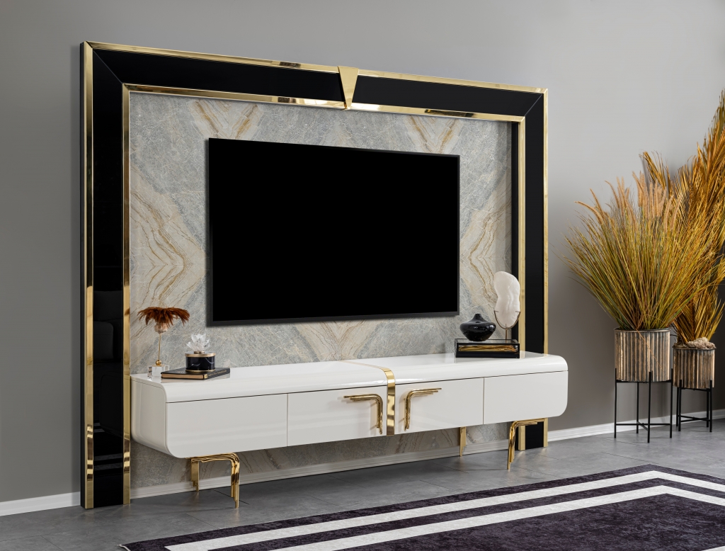 Obývací stěna NEFI je díky kombinaci moderních a elegantních detailů v antracitové barvě a sofistikované barevné harmonii navržena tak, aby ozdobila a dodala Vašemu domovu styl a vizi.