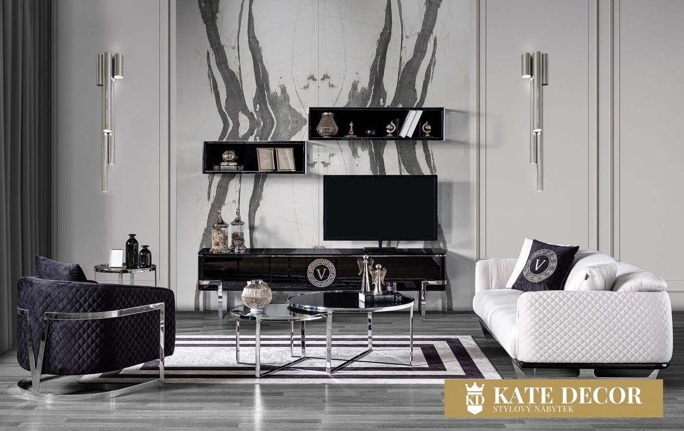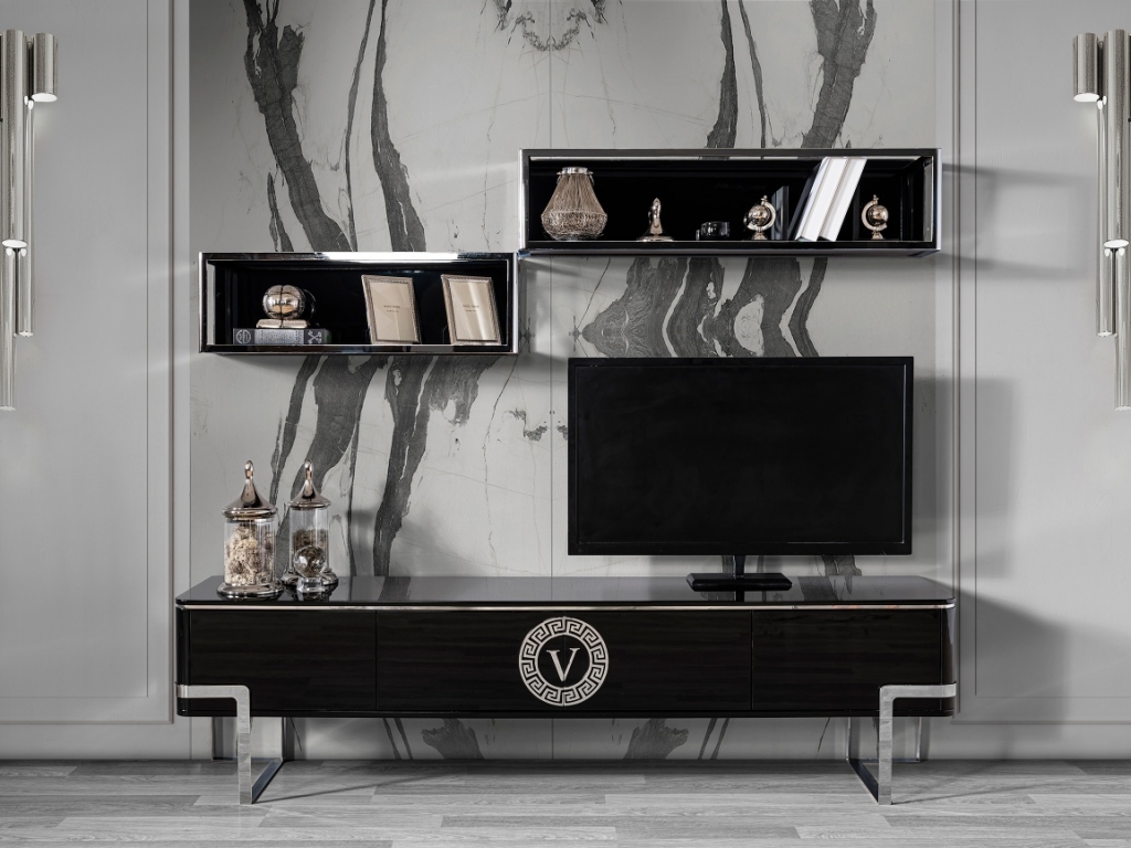 Obývací stěna VERSACE vystupuje do popředí svým stylem a designem. Díky úžasné kombinaci černé barvy s antracitovými detaily vytvoří okouzlující atmosféru a dodá Vašemu domovu vizi.